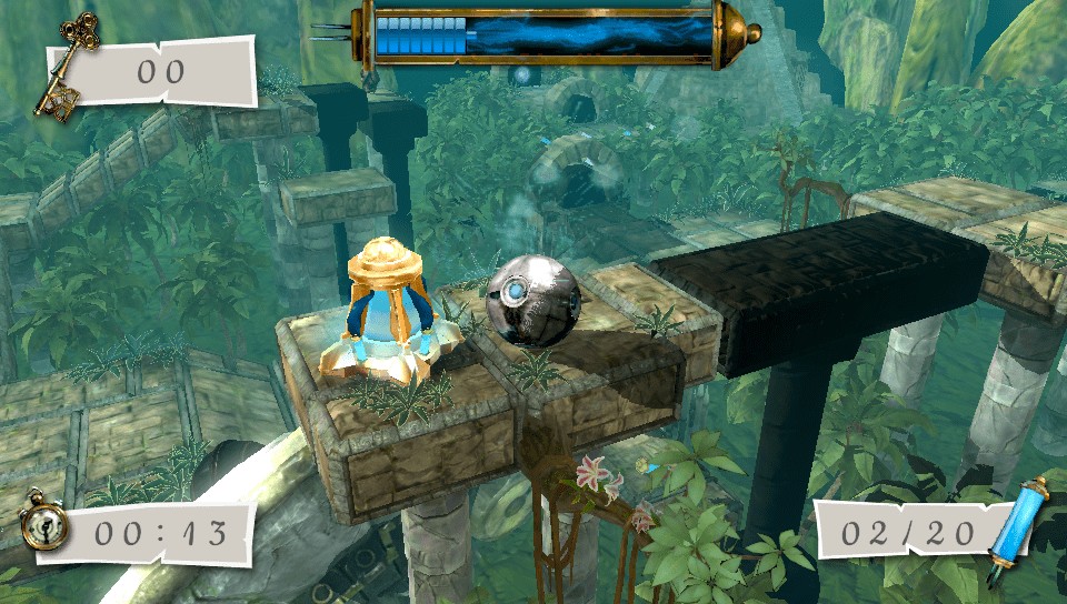 Les développeurs ont tenté d’ajouter quelques subtilités en vous imposant à mi-parcours un temps limité pour finir le niveau ou de vous forcer à utiliser votre chronofluide pour revenir dans le temps après avoir récupéré un objet sur une plate-forme sans issue. Mais rien à faire, on n’accroche pas. On s’ennuie même très vite, ceci étant peut-être aussi dû à la musique très répétitive. Pour finir, la maniabilité à l’aide du système Sixaxis de la PS Vita est juste abominable. Heureusement, on peut utiliser le stick de la console. Mais du coup, vous devrez faire attention à ne pas trop toucher la surface tactile arrière de la console, celle-ci servant à orienter la caméra.