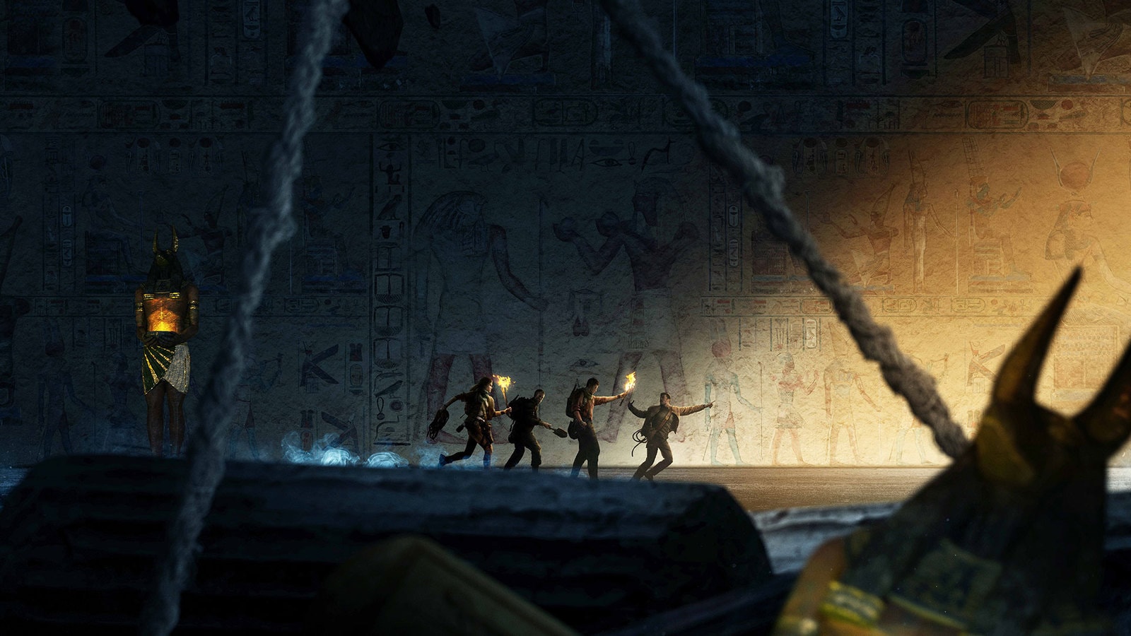Mais bien évidemment Assassin’s Creed oblige, on vous mettra dans Animus pour découvrir ce qui s’est passé lors d’une expédition au début du siècle dernier. Ici nos explorateurs n’ont rien d’un Ezio, ils ressemblent plus à vous ou moi. Peu agile, incapable de sauter. D’ailleurs comme je l’ai déjà énoncé quelques lignes au dessus, dans cette version d’Assassin’s Creed VR vous ne pourrez vous déplacer. La téléportation connu des utilisateurs de VR est ici utilisée pour les déplacements. Et j’ai envie de dire « heureusement », parce que dans certains cas j’ai eu cette sensation de perte d’équilibre et de vertige. Vertige car ici on vous demandera de monter au sommet de la pyramide, et ça passe par des plateformes mouvantes, de l’escalade etc. etc. Vous n’êtes pas statique, loin de là…
