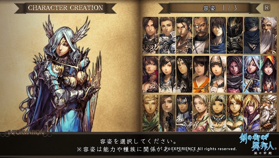 Dans Stranger of Sword City, on ne rigole pas, le jeu c’est sérieux… et on ne permettra pas des résurrections infinies. Lors de votre création de personnages, vous aurez entre 1 à 3 points de vie, selon l’âge que vous donnez à votre avatar. Ce qui correspond aux nombre de fois où vous pourrez être ressuscité ! En contrepartie, plus vous êtes vieux plus vous aurez de points a répartir dans vos compétences : de 10 à 19 ans, vous aurez trois points minimum, de 20 à 39 cinq points, puis de 40 à 59 sept points et enfin de 60 à 99 ans vous aurez dix points minimum. Bien sûr plusieurs races sont disponibles. Elles influeront également sur vos statistiques de base : humain, elfe, nain, Migmy (des gnomes/hobbits) et des Ney (mi-humain, mi-animaux). Comme souvent ces races sont plus ou moins adaptées aux classes habituelles : guerriers, chevaliers, samurais, magiciens, prêtres, archers, ninjas et danseurs. Mais pas de panique, si un personnage perd un de ses points de vie, il peut le regagner à condition de rester alité et donc d’être inutilisable quelques jours. Ce qui est ennuyeux, mais pas complètement pénalisant. Bref, les ingrédients sont réunis pour insuffler une bonne dose d’adrénaline dans les combats, la mort ayant un véritable impact.