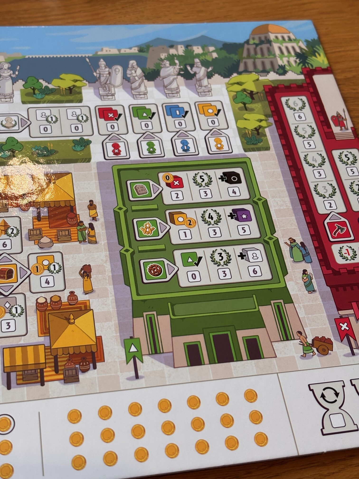Votre but est limpide : terminer trois bâtiments complets. Chacun appartient à une catégorie : garnison militaire, marché, forum, bâtiment scientifique, etc. Et tous ne se valent pas : certains demandent trois cases seulement, d’autres jusqu’à neuf ! La gestion du temps et des priorités devient donc essentielle. Sachant que chaque ville est un peu différente.