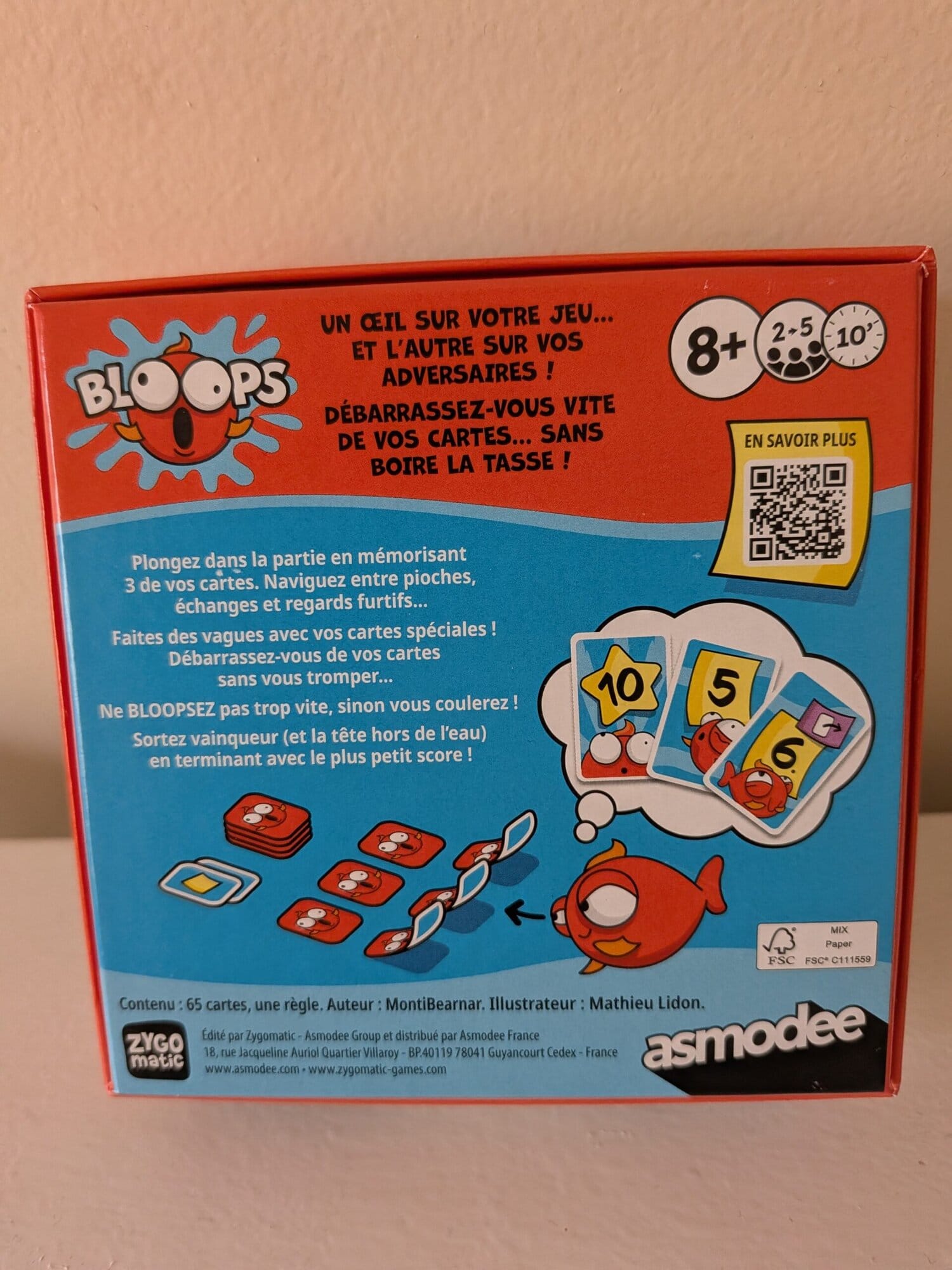 Bloops est édité par Zygomatic, un label qui mise sur des jeux familiaux courts et faciles à transporter. On est clairement sur une promesse “sortie rapide” : petit format, mise en place immédiate, et une règle pensée pour être comprise sans trop d’effort.