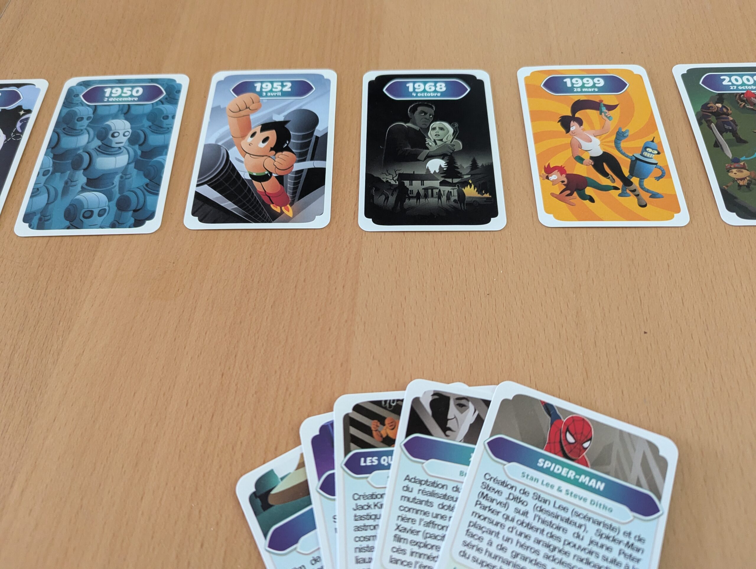 Chaque joueur reçoit quatre Événement. Chacune décrit un fait marquant ( de film, roman culte, invention, etc.), accompagné d’un petit descriptif.