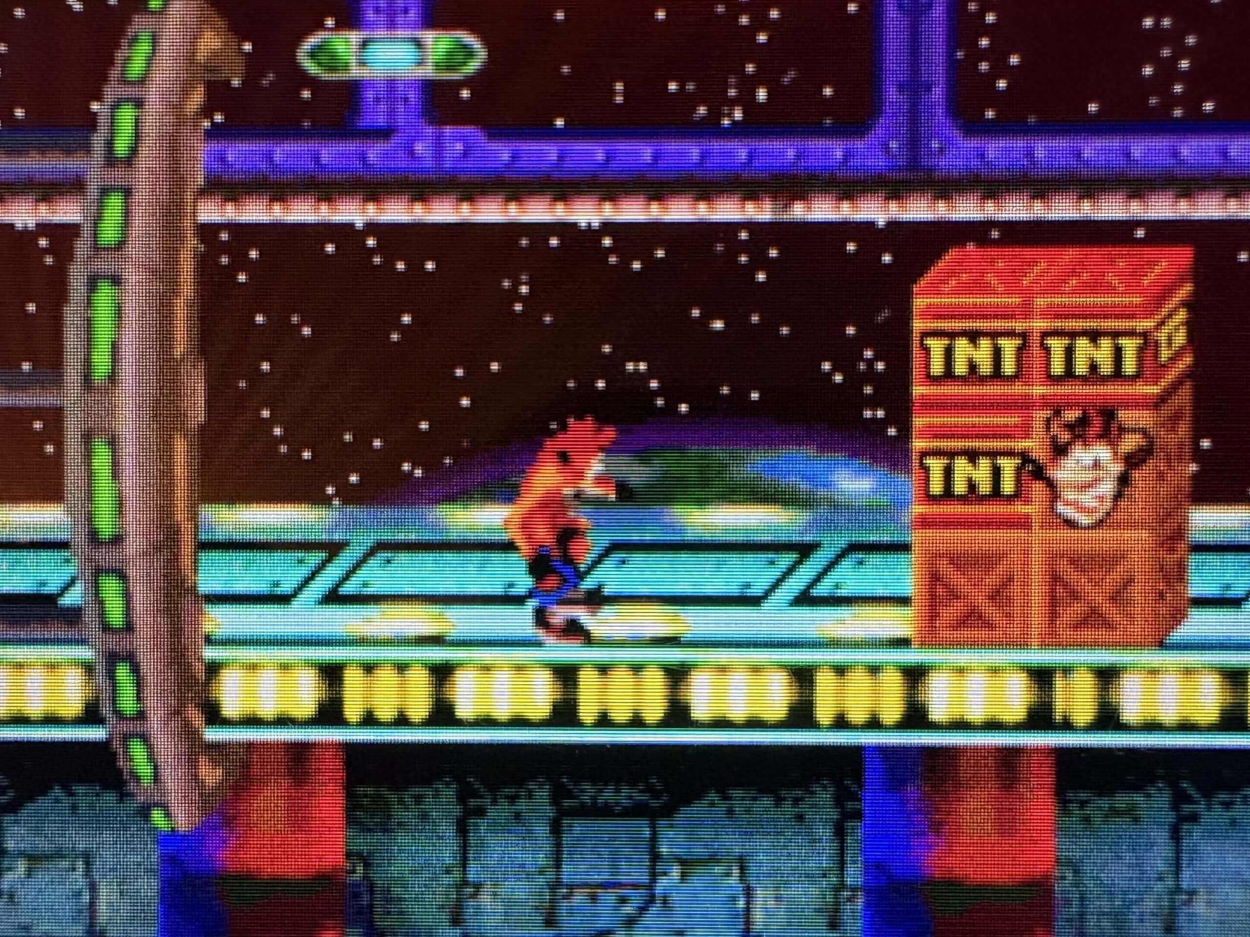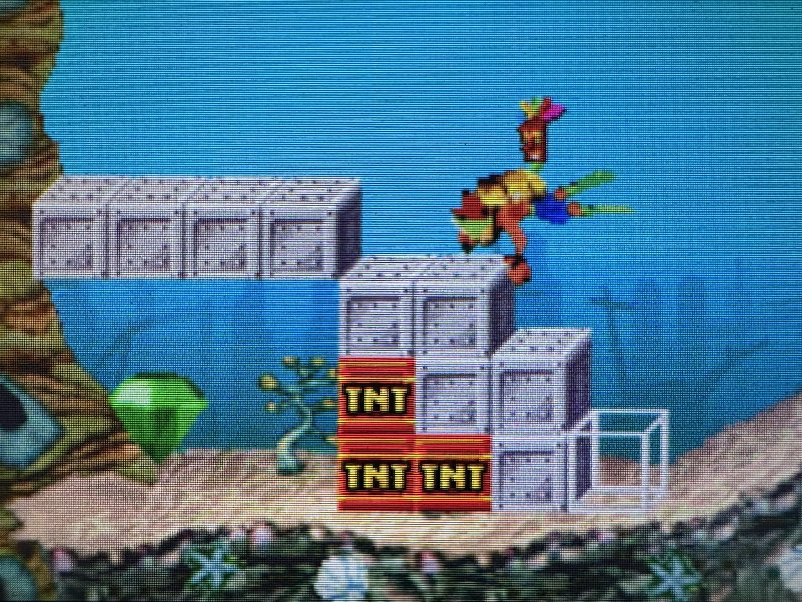 Néanmoins, le titre adopte une philosophie proche des productions Nintendo avec une accessibilité immédiate et une rejouabilité bien plus exigeante. En effet, pour viser les 100%, vous devez détruire toutes les caisses afin d’obtenir des émeraudes. De plus, certaines gemmes colorées se cachent dans des niveaux spécifiques et débloquent des zones secrètes particulièrement bien pensées. Par conséquent, cette mécanique encourage l’exploration, la précision et une excellente maîtrise du gameplay.