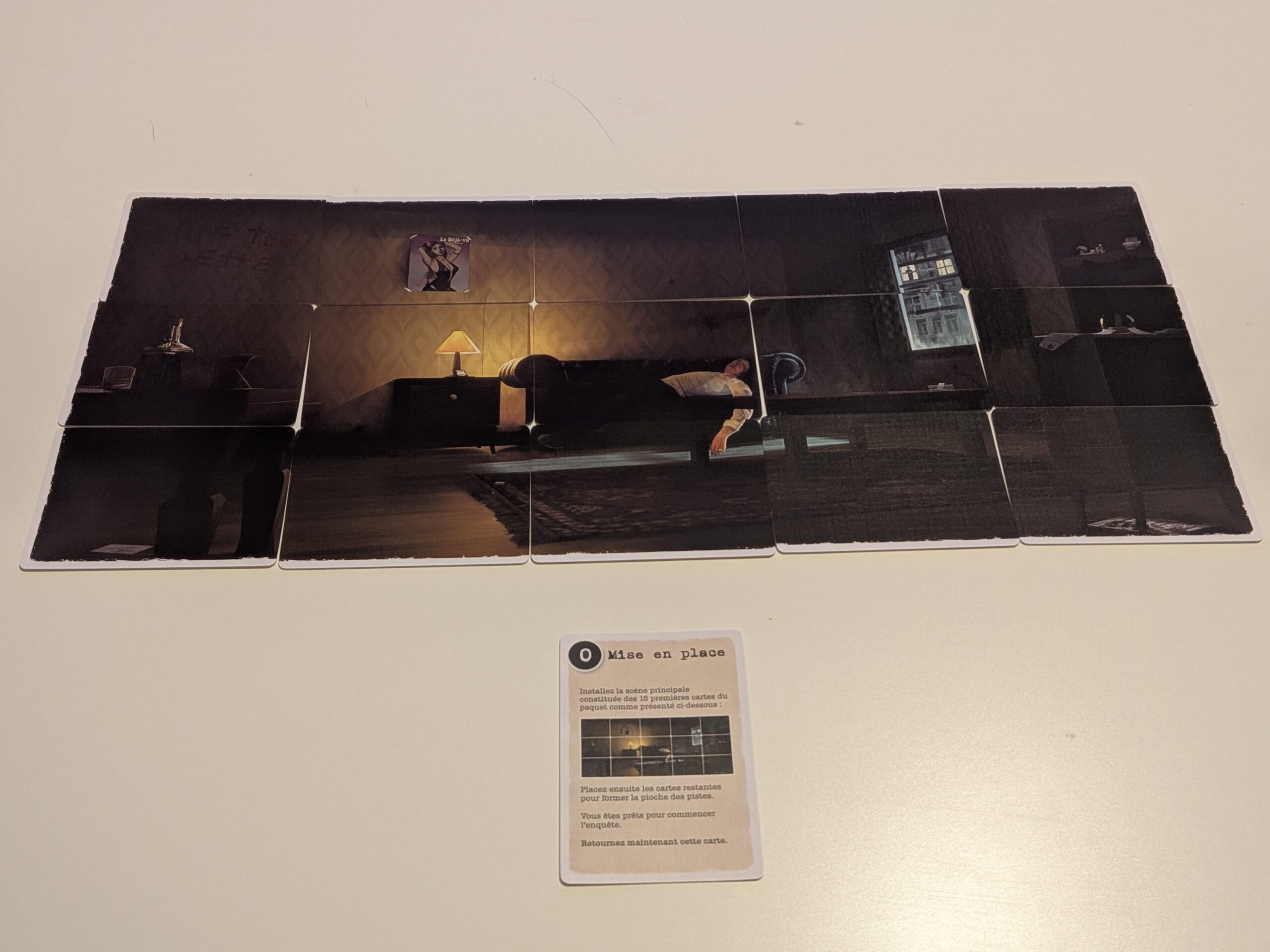 Contrairement à certains jeux d’énigmes, il ne s’agit pas d’enchaîner des puzzles. L’objectif est plutôt de comprendre ce qui s’est passé. Pour cela, les joueurs observent les cartes, discutent et construisent leur propre théorie. Par ailleurs, le format du jeu est compact. La boîte contient essentiellement des cartes illustrées. Cela facilite la mise en place et de le transporter facilement. Prévoyez quand même l’équivalent d’une table basse pour pouvoir étaler toutes les cartes.