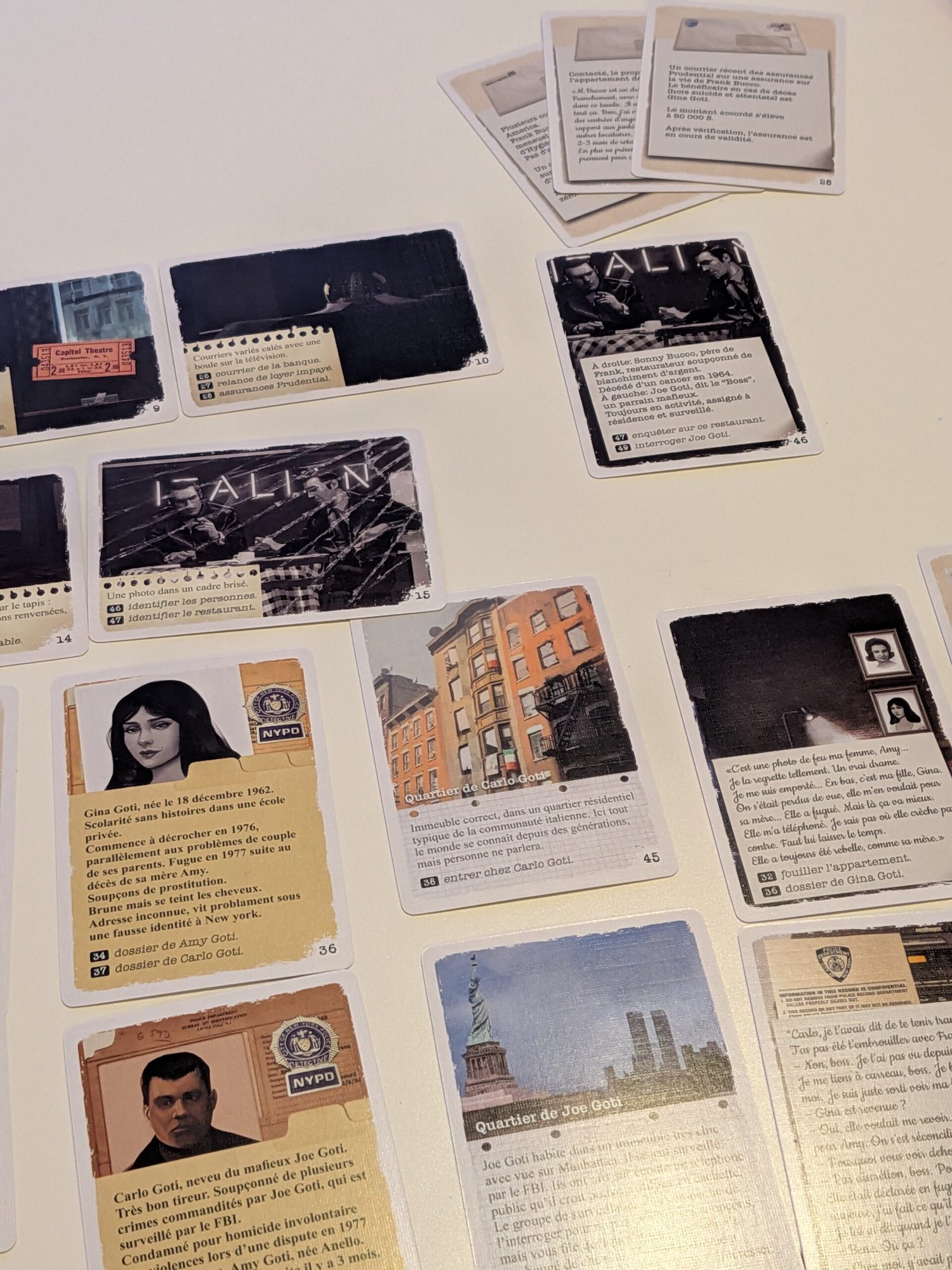 Au fil de la partie, les joueurs accumulent des informations. Ils peuvent aussi revenir sur certaines cartes pour vérifier un détail. Cependant, toutes les cartes ne sont pas nécessaires pour résoudre l’affaire. Il est possible de terminer l’enquête sans tout explorer. Mais franchement… ça n’a pas d’intérêt ! Découvrez tout.