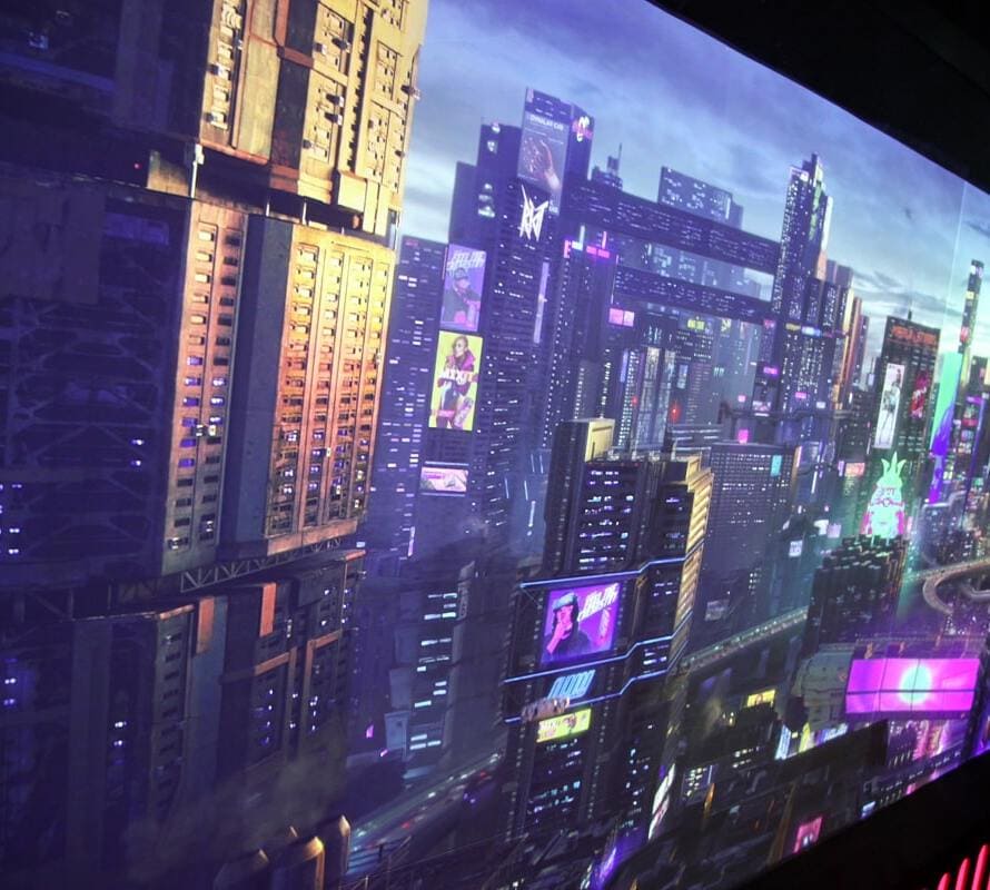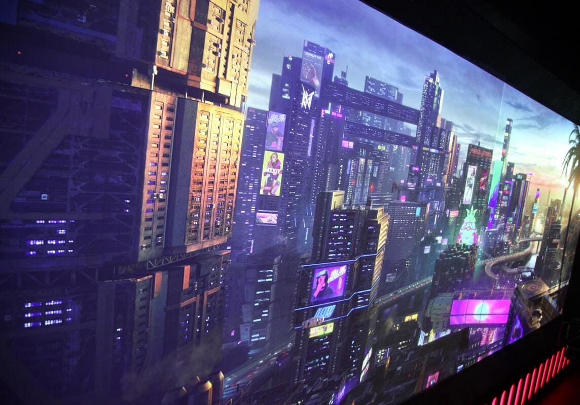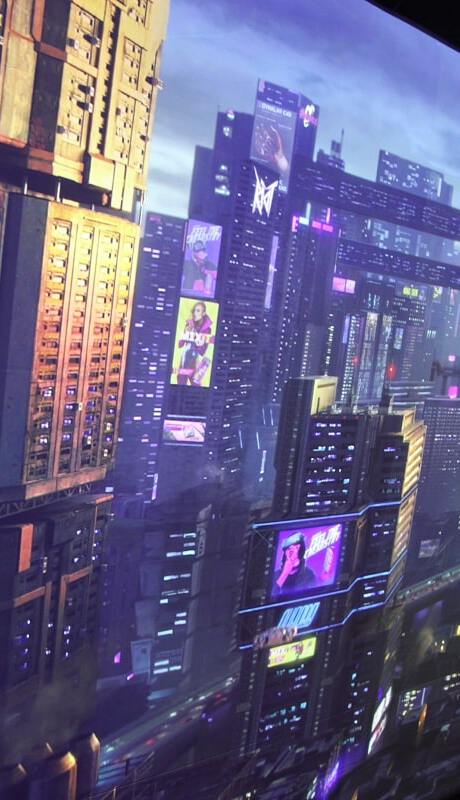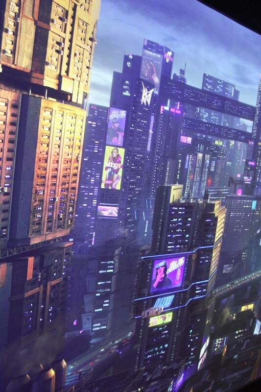 Nous avons a eu la chance d’assister à une présentation de Cyberpunk 2077 sur le stand de CD Projekt, transformé pour l’occasion en véritable bar à l’ambiance purement 80’s.