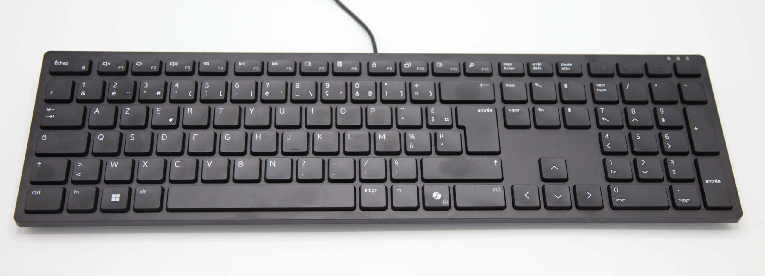 Le Dell KB525C s’impose comme le clavier d’entrée de gamme de la marque, alliant légèreté et praticité. Avec un poids plume de 462 grammes et une épaisseur de seulement 2,3 cm à son point le plus épais, il se distingue par sa finesse. Cependant, son intégration d’un pavé numérique porte sa longueur à 43,4 cm, ce qui le rend peu compatible avec les sacoches de taille classiques. Il trouve néanmoins sa place dans un sac à dos, offrant ainsi une solution transportable, bien que son encombrement puisse poser question (on y reviendra).