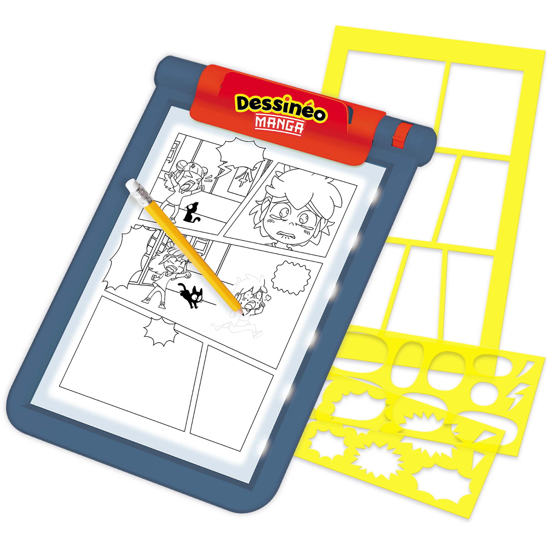 - Une tablette lumineuse format A4, avec pince de fixation + rangement pratique au dos.
