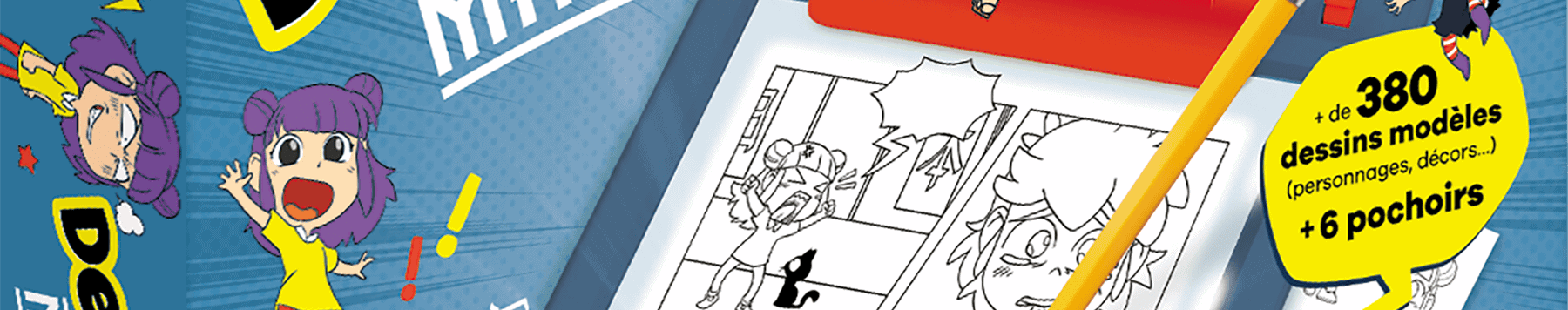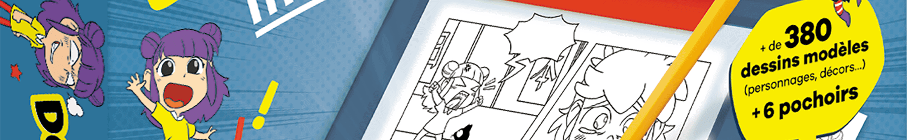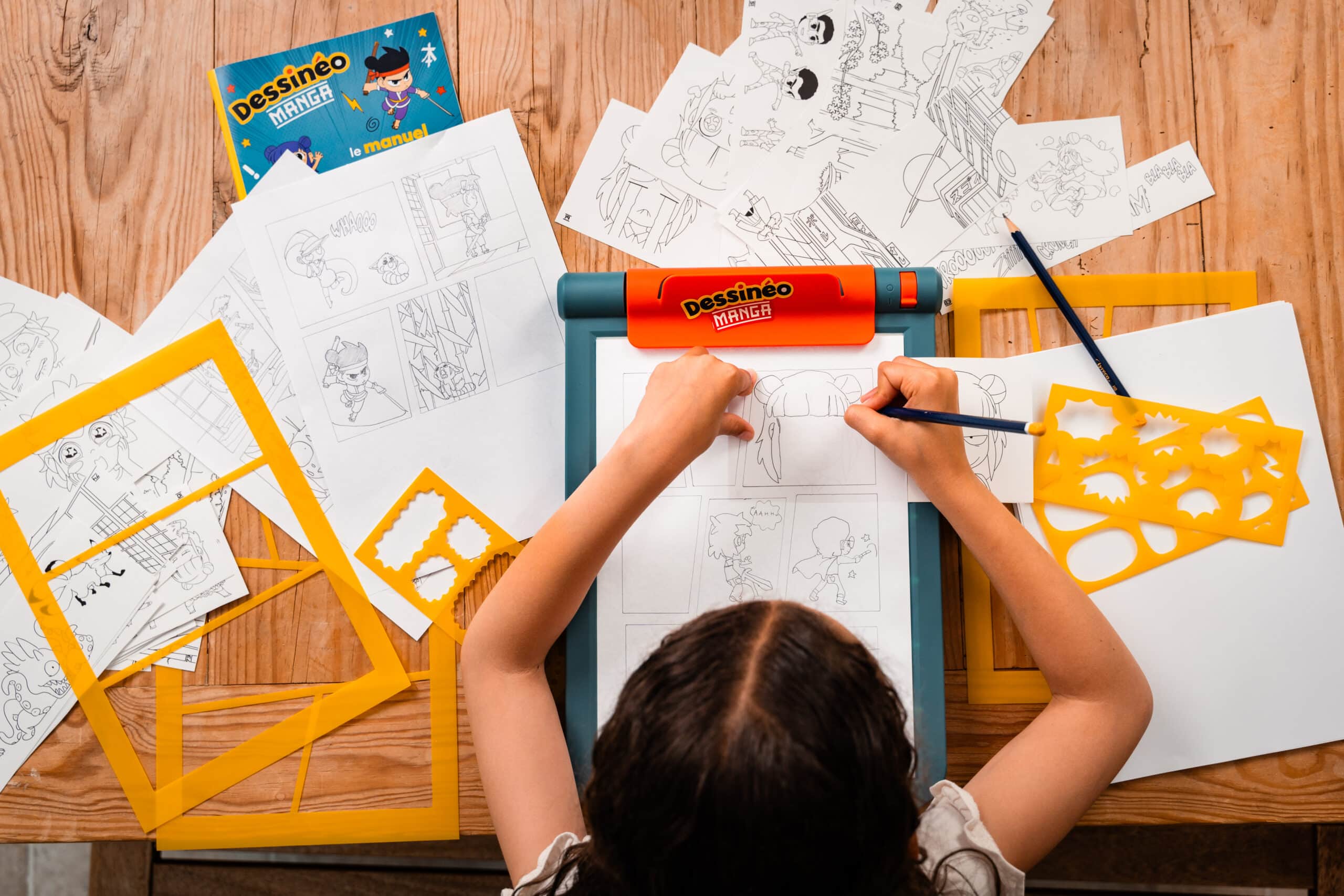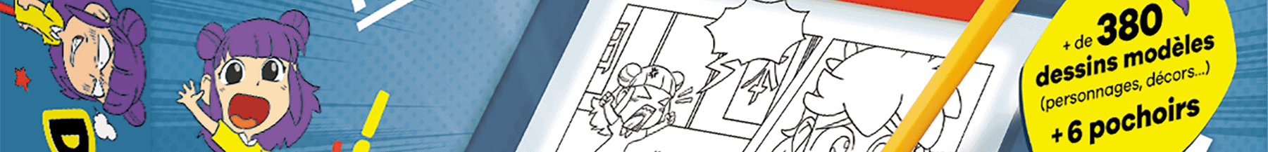 Tout est pensé pour que l’enfant parte de l’idée initiale (scénario, intrigue), et arrive jusqu’à une véritable planche, voire un mini-manga complet !