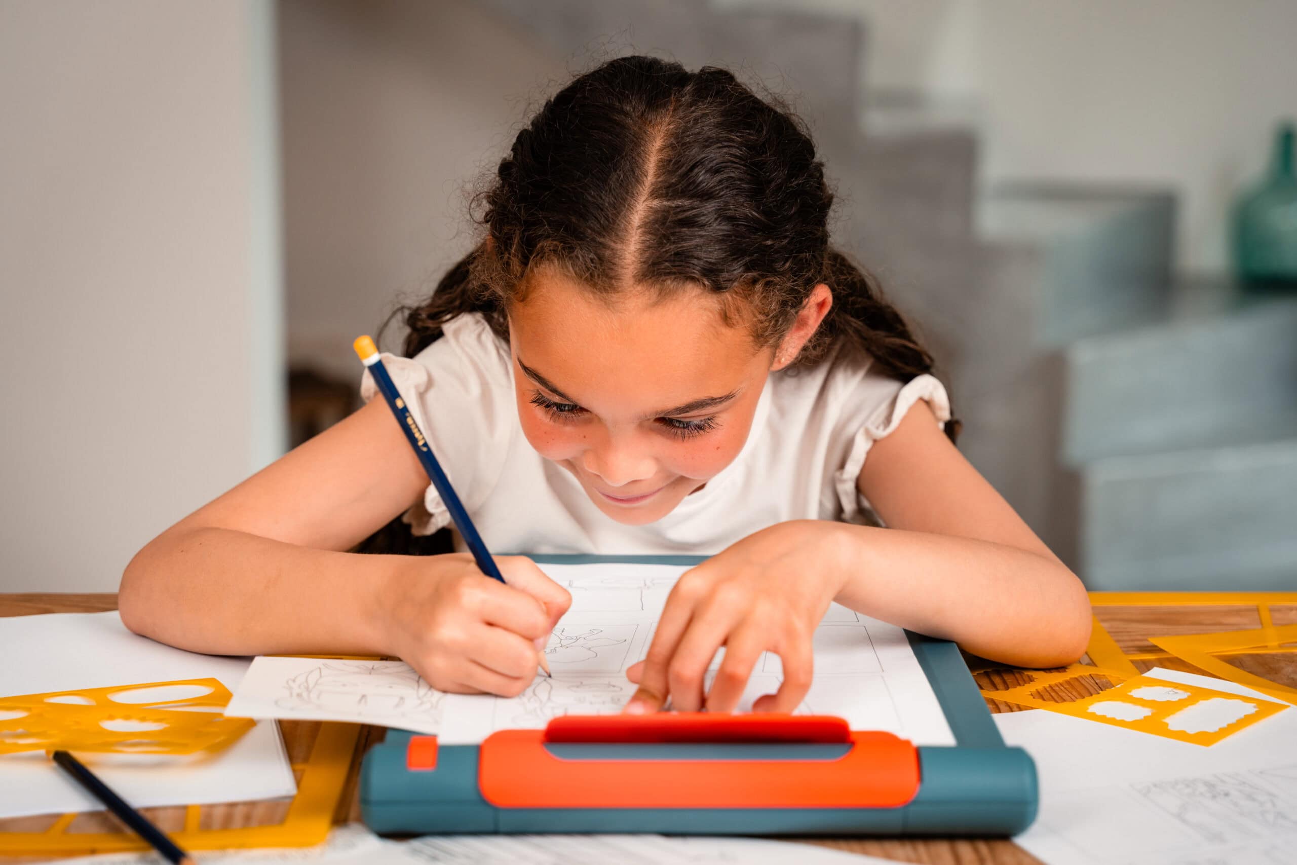 - Un bon équilibre entre guidage et liberté créative : les modèles et les pochoirs aident, mais l’enfant reste libre d’imaginer ses personnages, son histoire, ses décors.