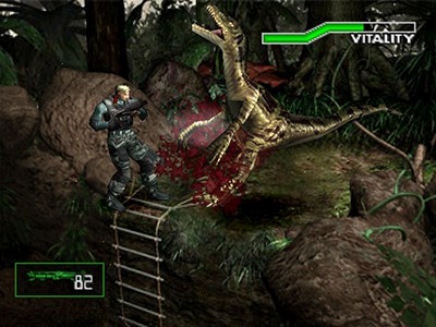 Tout d’abord, un an après l’incident du premier Dino Crisis, une agence gouvernementale a repris les recherches du méchant docteur Kirk. Bien évidemment, comme toujours dans ce genre d’histoires, ils ont fait n’importe façon Umbrella. Nous avions été largués dans une jungle hostile, avec une seule mission très simple : récupérer les données sur la Tri-Énergie et sauver quelques rescapés.