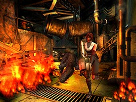 De plus, pour cette aventure, nous n’étions pas seuls. Regina, l’héroïne du premier jeu est de retour, toujours en cuir moulant façon BDSM, une tenue peu appropriée pour la jingle. On retrouvait aussi deux nouveaux, Dylan Morton, le bodybuildé du groupe façon Chris Redfield, et David, un cowboy indien un peu plus secondaire. Cependant, comme dans tout film d’horreur mal écrit, nous avions atterris au milieu de méchants dinosaures pret à nous manger. Une fois séparé, Dylan se mis à avancer en quête de la vérité face à une horde de dinosaures voraces.