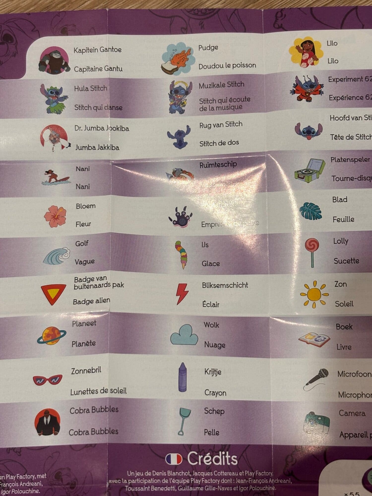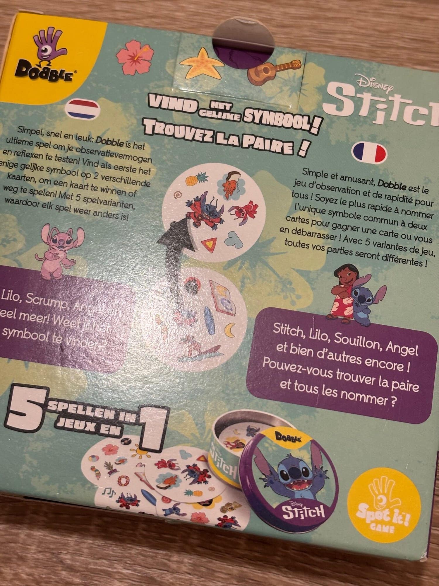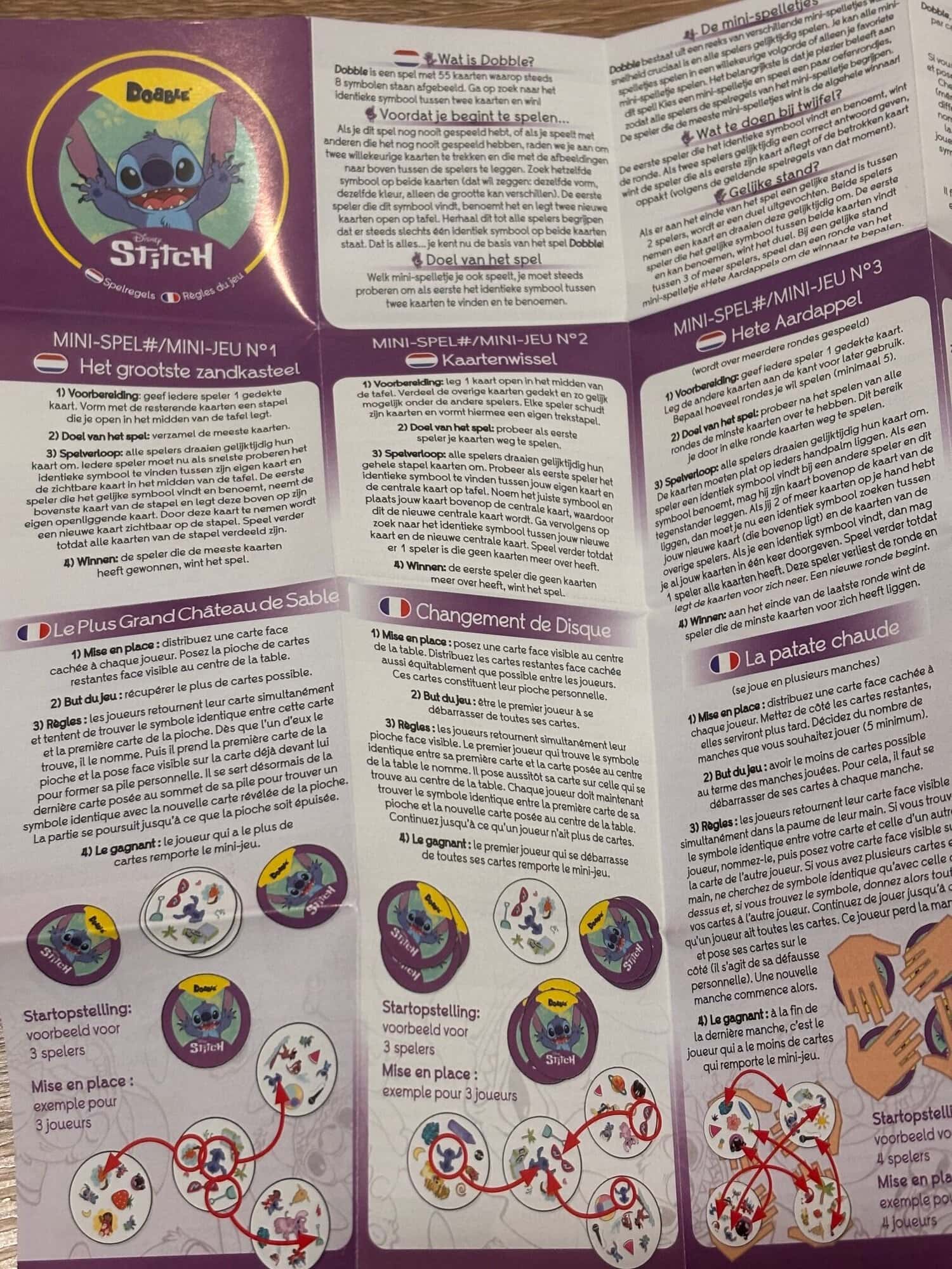 Comme toujours dans Dobble, la boîte propose plusieurs variantes de jeu. Dans cette édition, elles ont simplement été renommées pour coller à l’univers de Stitch :