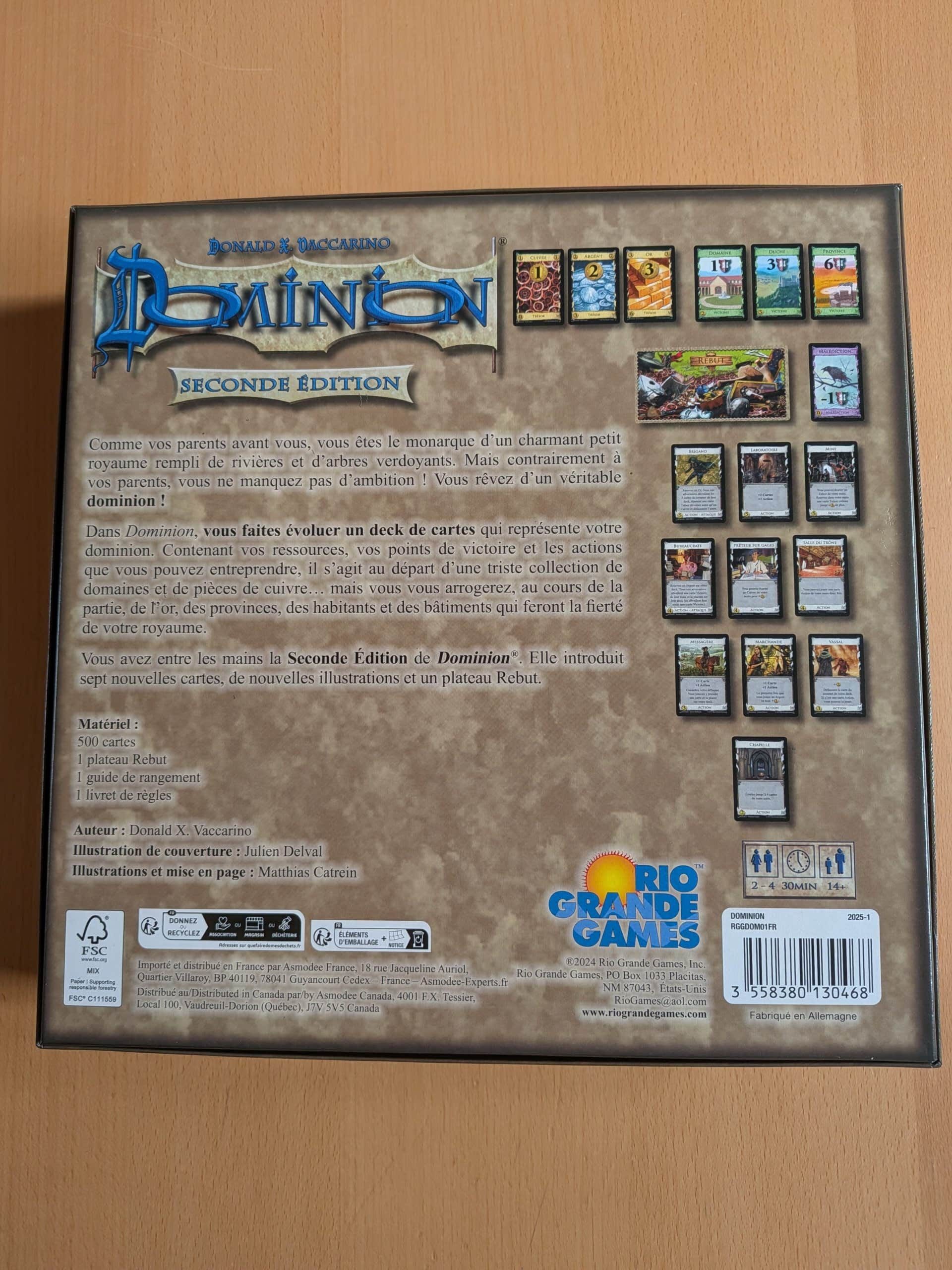 La version que j’ai eue entre les mains est la 2ᵉ édition de Dominion. Elle propose un contenu affiné, plus équilibré, et plus accessible que la première.