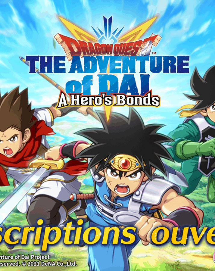 Le nouveau jeu mobile, DRAGON QUEST The Adventure of Dai: A Hero’s Bonds, sera lancé dans le monde entier sur l’App Store et Google Play le 28 septembre 2021. Basé sur l’animé DRAGON QUEST L’aventure de Daï et un dérivé de la série DRAGON QUEST de SQUARE ENIX.