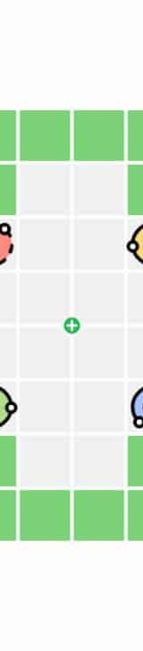 Joueur d'air-gaming en compétition, contrôlant une équipe de personnages colorés dans une partie stratégique sur une grille verte.