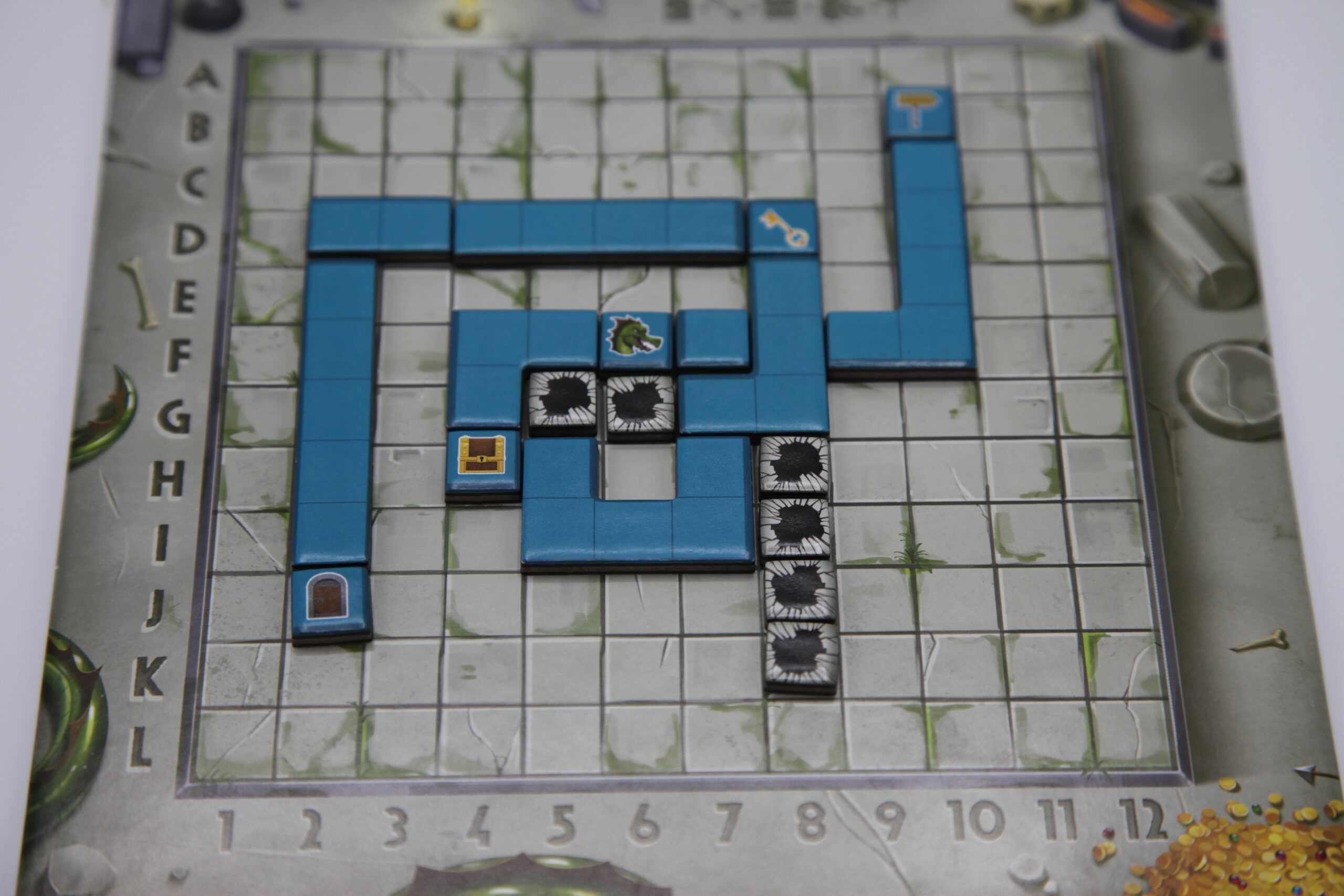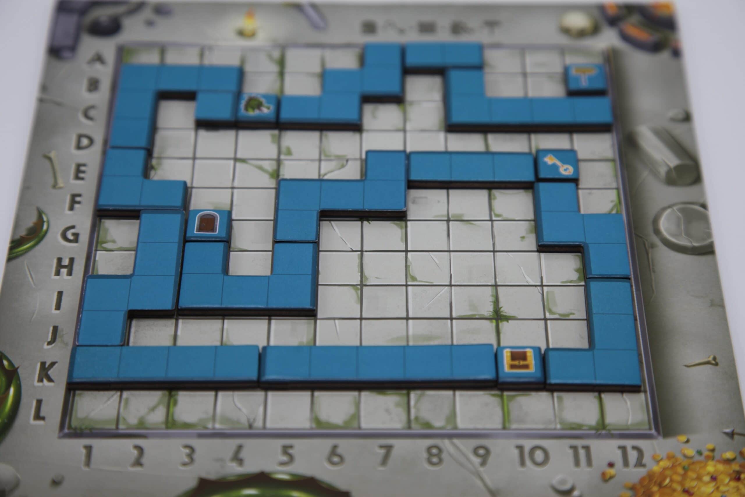 L’objectif est de relier ces éléments dans cet ordre précis, à l’aide de pièces de formes variées qui représentent votre progression dans le donjon. Deux règles fondamentales sont à respecter: