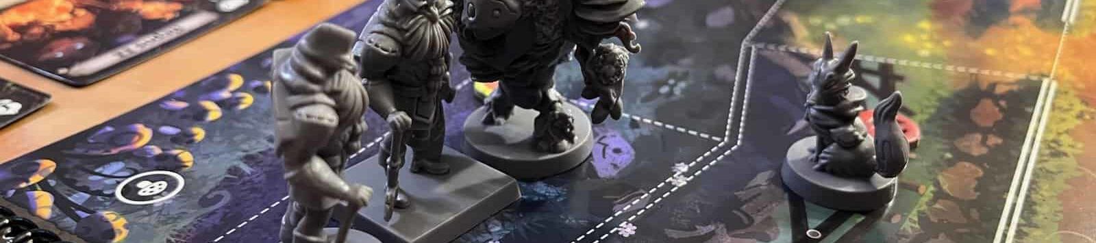 Globalement Familiar Tales recoche toutes ces cases. Le système de jeu est de type deckbuilding avec un nombre de cartes proche de la dizaine. Donc facile à retenir. L’histoire bien qu’inspiré un peu de Willow (NDR : oubliez la série Disney, elle fait mal au cœur) donne l’occasion à nos compères de voyager au-delà de leurs frontières connues. Et les héros sont improbables, nous ne jouons rien de moins que les familiers d’un très grand magicien. Les joueurs pourront endosser la capuche d’un renard, crapaud, golem, ou d’une fée. Ces quatre comparses ne sont pas sans rappeler les grands classiques du jeu médiéval fantastique en proposant une version adaptée des sorciers, voleur/archer, guerrier, gros bill.