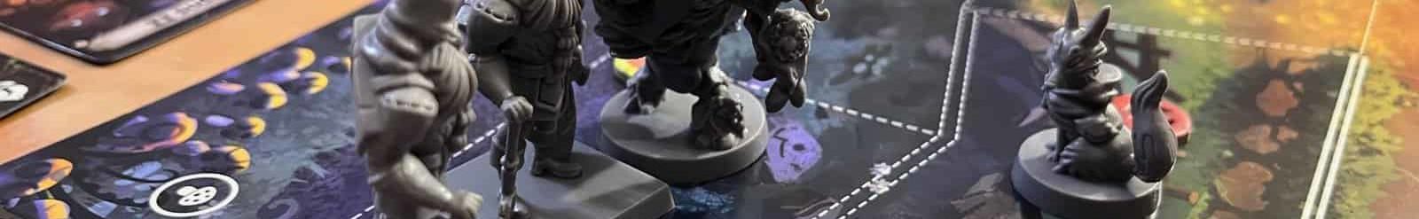 La partie s’enchaîne très bien une fois qu’on a compris les règles, mais le jeu va se montrer très difficile. Souvent l’un des joueurs sera affecté à prendre soin de l’enfant tandis que les autres tenteront de tuer les ennemis, pas nombreux, mais plein de points de vie. Il faut dire que trois de nos familiers ne peuvent que faire 1 point de dégâts, seule la brute s’en tire mieux. Alors on joue un peu au chat et à la souris, le gros bill tape, les autres défendent.