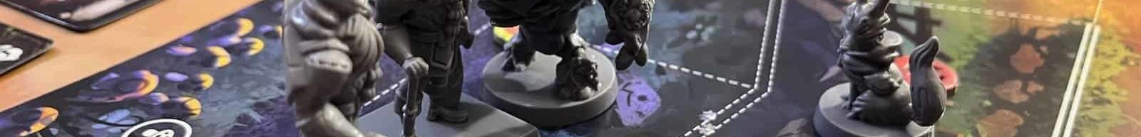 On prend son protagoniste qui sera d’une taille plus ou moins conséquente, taille qui aura son importance qu’on imagine dans certaines cartes. Car elle est indiquée sur la carte qui représente votre personnage. Les figurines sont en plastique et magnifique, pendant tout le jeu on sera très heureux de sortir les nouveaux monstres tant ils sont beaux et bien réalisés. Petit élément malin, chaque figurine ennemie aura un socle différent pour ne pas les confondre quand vous tenterez de réduire leur point de vie.