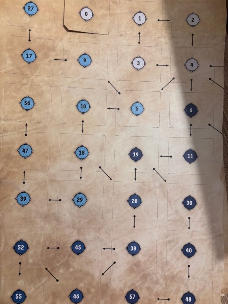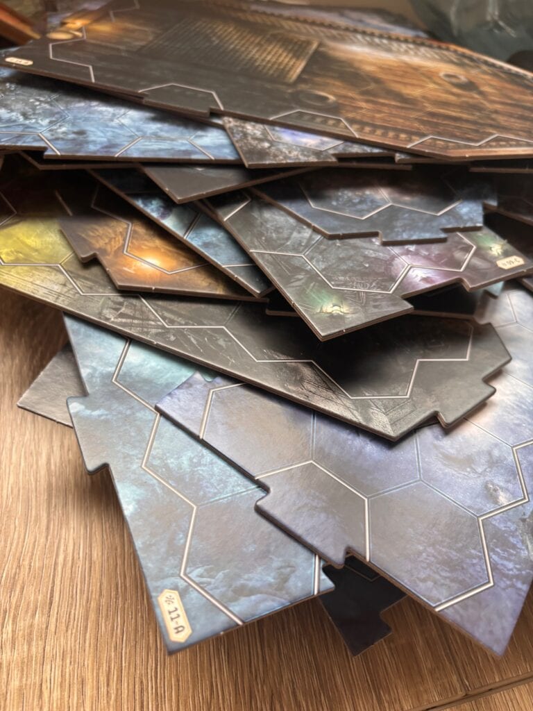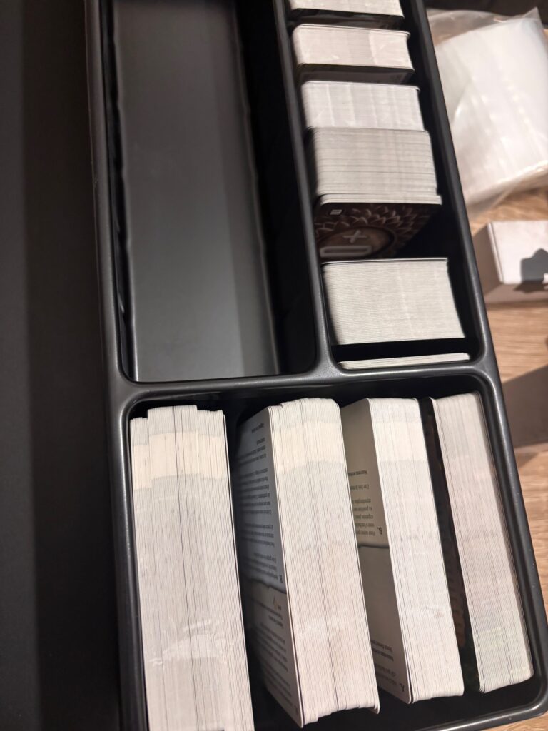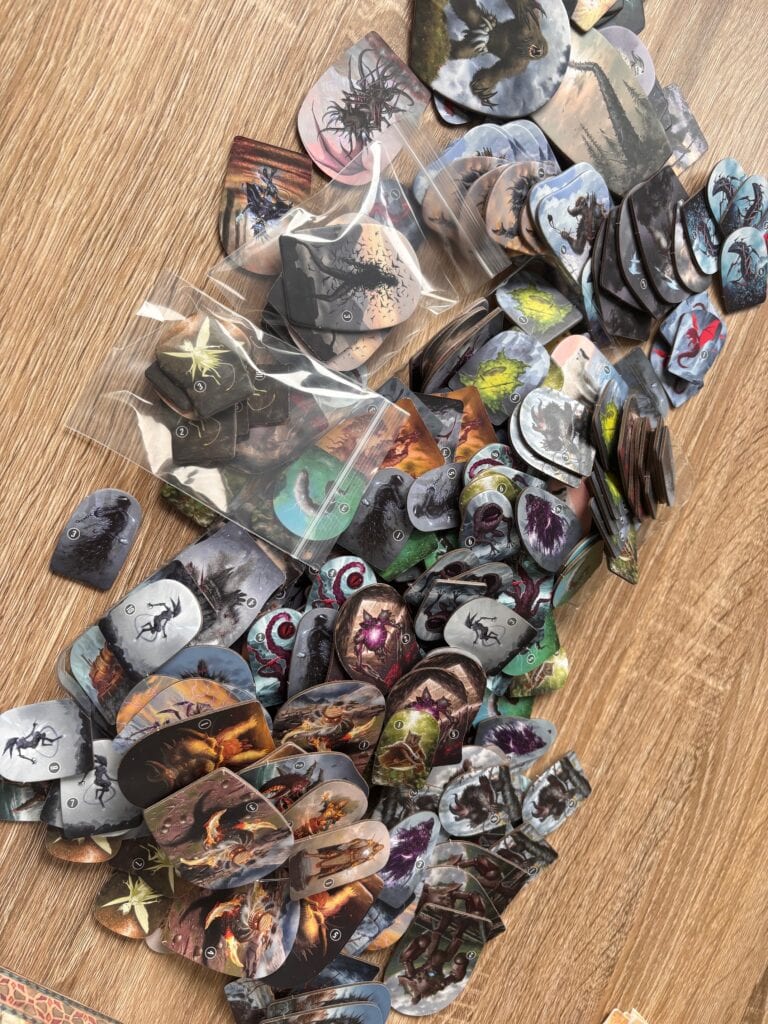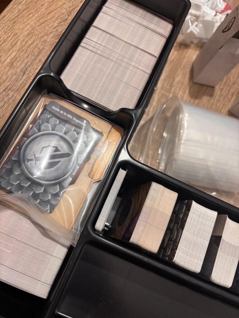 Je vais vous le dire tout net : rien que l’unboxing de Frosthaven, c’est une aventure. Trois heures. Littéralement. Entre le dépunchage des centaines de tuiles, la lecture de l’inventaire (qui prend plusieurs pages), l’organisation des composants, le rangement des cartes (plus de 1300 au total)… C’est déjà un scénario d’introduction en soi. Et ça, sans avoir encore touché une seule figurine.