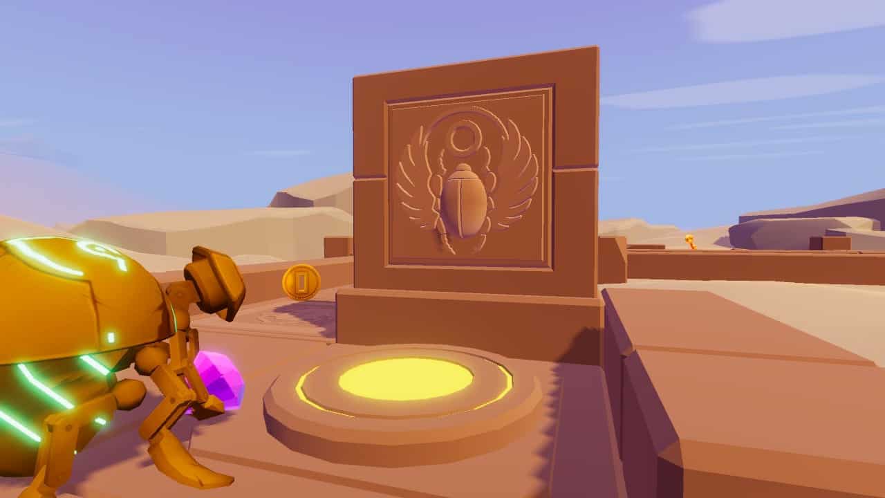 Comme évoqué en introduction, le principe de Glyph consiste à parcourir une succession de niveaux en manipulant un scarabée mécanique (ou d’autres insectes déblocables ensuite) qui se met en boule pour rouler, sauter, accélérer, voler et ainsi franchir divers obstacles. Le titre requiert adresse, réflexion, précision et parfois vitesse. Car si la sortie de chaque niveau se débloque en ramassant le nombre de clés requis, les objectifs alternent entre exploration (sans limite de temps) et course chronométrée. Les niveaux ne répondent pas à un ordre précis mais ne sont pas tous accessibles dès le départ non plus. La carte centrale étant représentée par un temple qui se construit au fur-et-à-mesure de la progression du joueur, à l’effet une fois encore plutôt réussi.