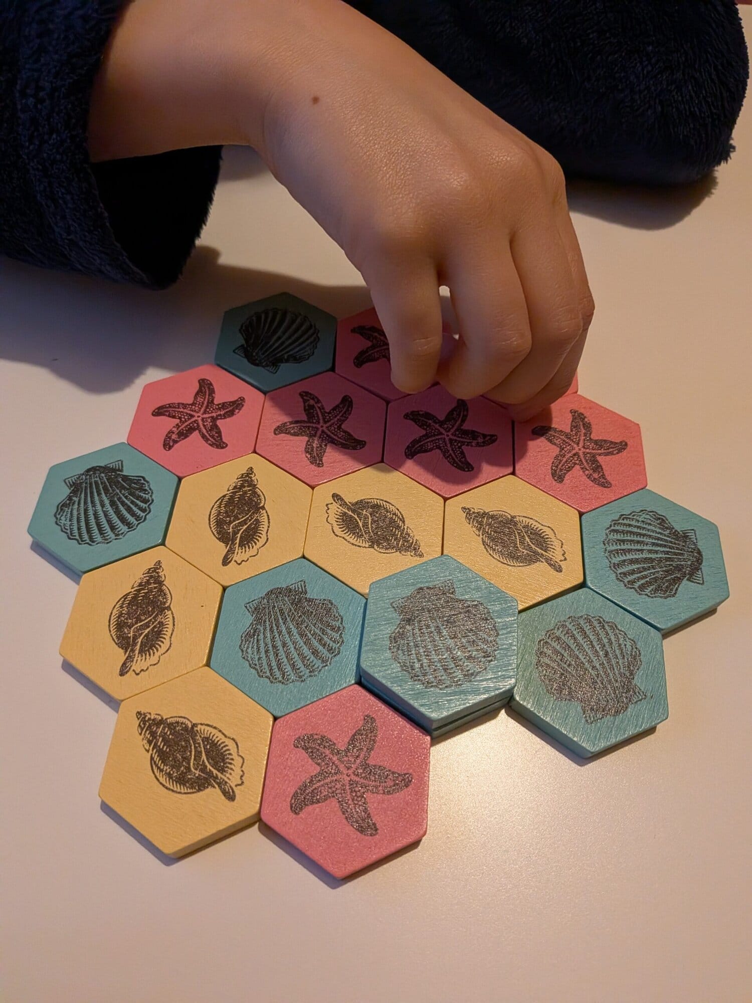 Les règles sont donc très courtes. Pourtant, les contraintes créent une vraie tension, le sort d’une manche peut changer en un mouvement de tuiles. Ainsi, le jeu se prend en main rapidement, tout en proposant une réflexion intéressante.