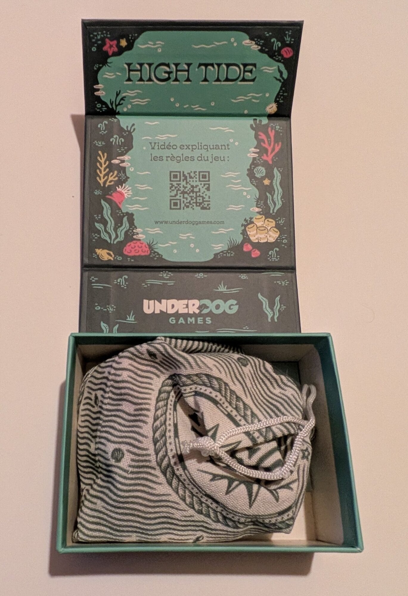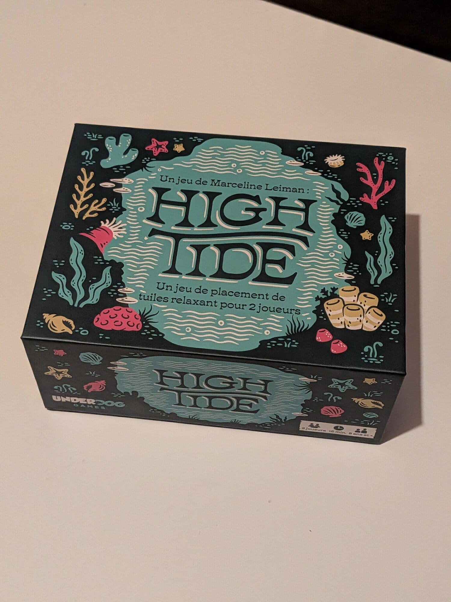 Du côté de l’éditeur, High Tide est publié par Underdog Games. Il s’agit d’une société américaine qui s’est fait connaître grâce à des jeux familiaux. Fondée en 2014 notamment par Hasan Hasmani et Charlie Bink, l’entreprise revendique une mission claire : créer des jeux qui favorisent les moments de partage entre proches. Leur catalogue comprend des titres reconnus comme Trekking the National Parks, Trekking the World ou encore Trekking Through History, qui combinent découverte, pédagogie et plaisir de jeu. Avec High Tide, l’éditeur confirme son intérêt pour des formats compacts, faciles à transporter, mais capables d’offrir une vraie profondeur stratégique.