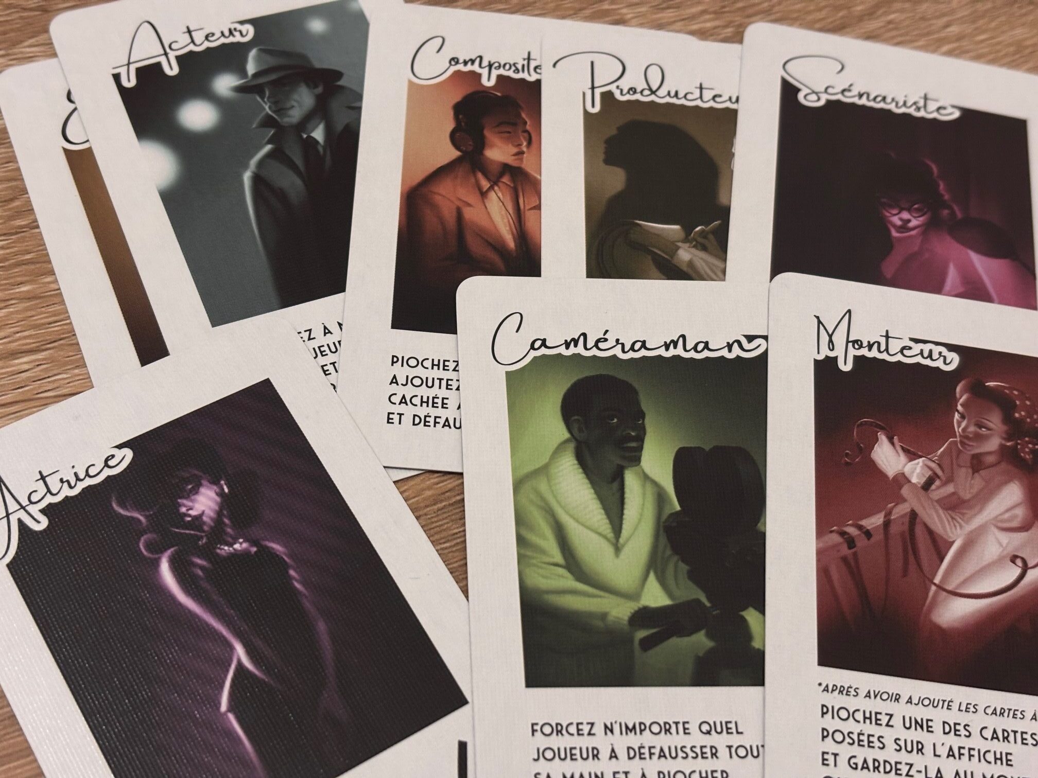 Là où Hollywood 1947 surprend vraiment, c’est dans la manière dont son thème prend vie autour de la table. Le cinéma est un univers que tout le monde connaît, même sans être un spécialiste. Scénariste, réalisateur, acteur, producteur… ces rôles font immédiatement écho à notre imaginaire collectif. Et très vite, la partie se transforme en véritable petit plateau de tournage. Car ces métiers ne sont pas seulement des capacités inscrites sur une carte. Ils deviennent rapidement un prétexte parfait pour jouer la comédie. On se surprend à défendre un projet, à critiquer un scénario, à justifier une décision comme si l’on était réellement en pleine réunion de production dans un studio hollywoodien.
