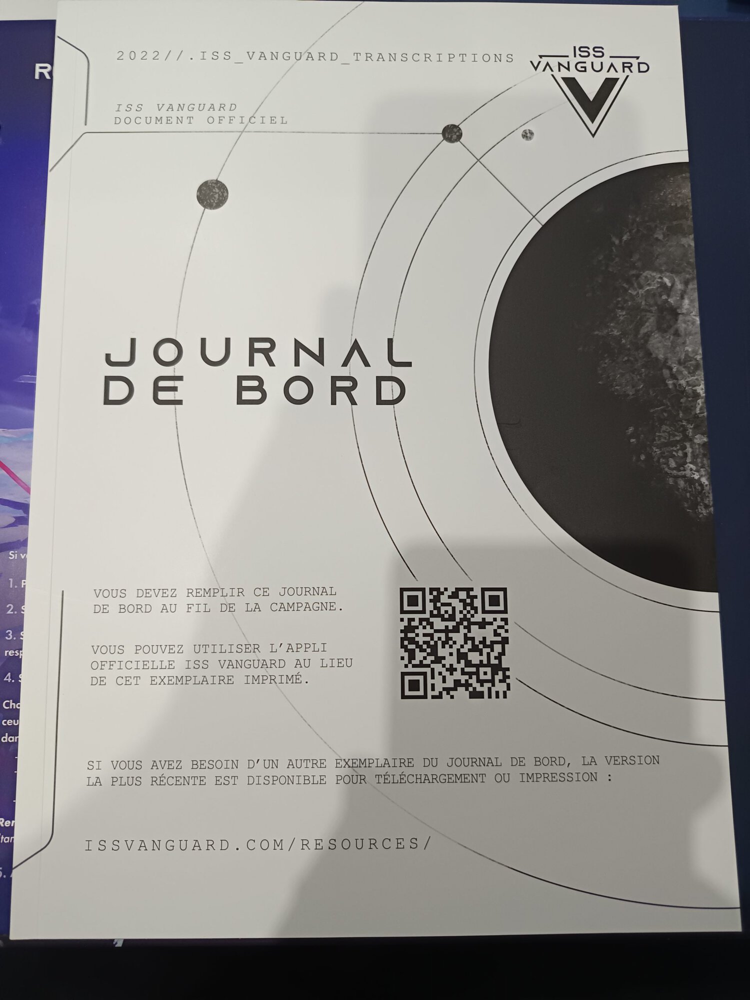 Vous incarnez l’équipage de l’ISS Vanguard, un vaisseau envoyé en mission dans l’espace pour sauver l’humanité. (Je ne vais pas en raconter plus pour éviter de trop « divulgâcher » l’histoire qui suit). À l’aide d’un journal de bord (façon livre dont vous êtes le héros), vous allez dérouler vos aventures (découvertes, rencontres hostiles, etc.. ) avec une mécanique de dés à lancer et de cartes à jouer aux moments opportuns.