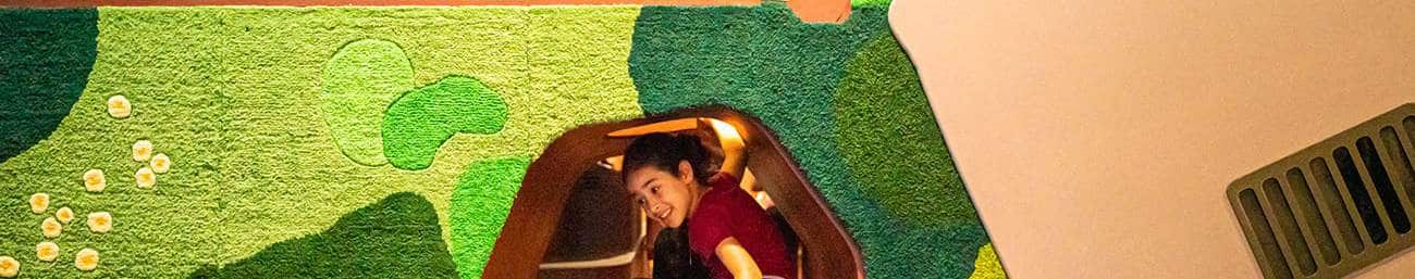 Dans ce monde festif, les enfants relèvent des défis d’agilité, de mémorisation, d’équilibre tout en découvrant leurs super-pouvoirs : force, coordination, assurance. L’espace est pensé pour souligner l’importance de l’effort, de la persévérance, de l’entraide. Les muséographes ont réussi à insérer de façon naturelle dans cet espace des notions importantes comme le consentement ou les stéréotypes. Bravo à eux !