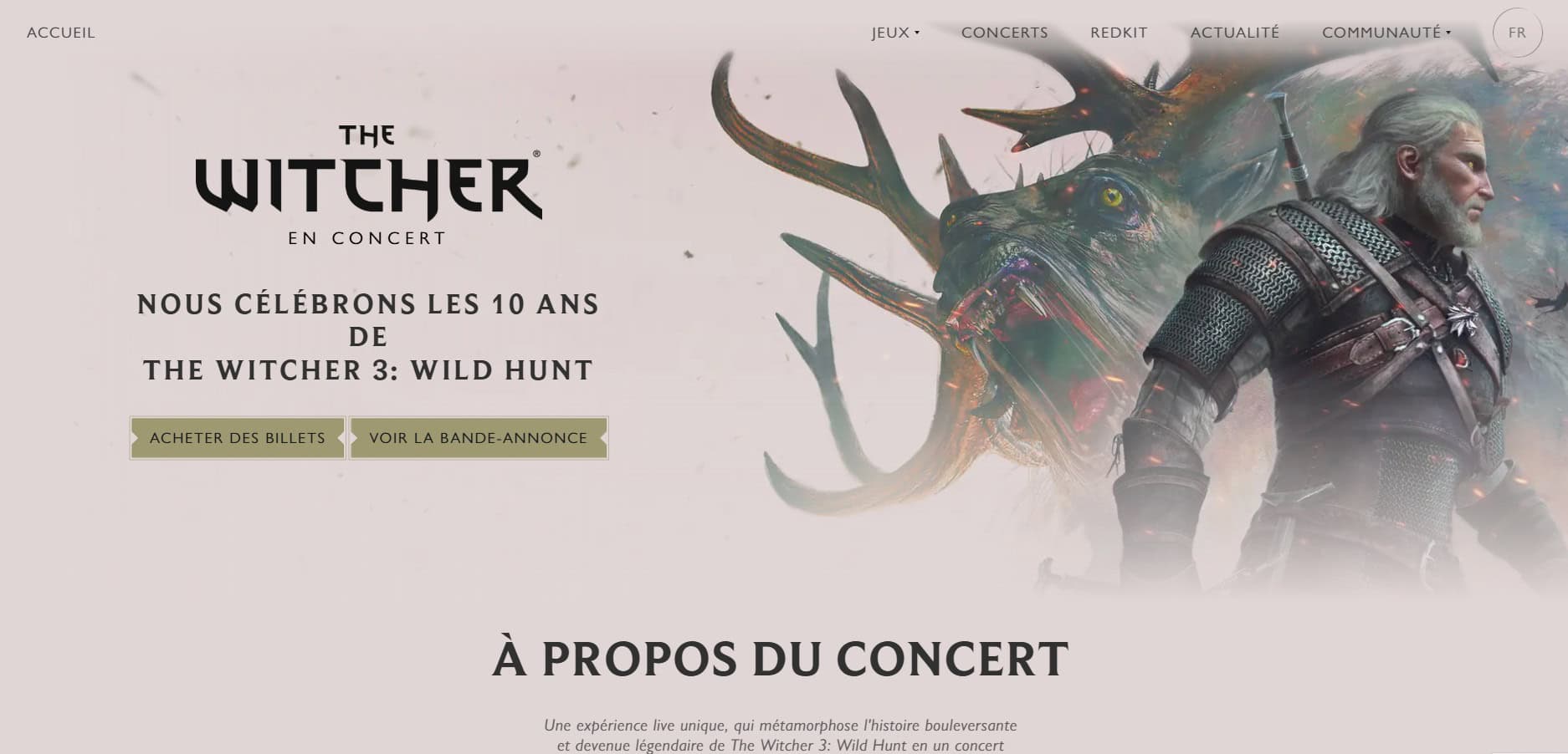 CD PROJEKT RED s’est officiellement associé à Gamescom, un des plus grands événements mondiaux du jeu vidéo, pour lancer « The Witcher in Concert » le 20 août 2025 à Cologne, en Allemagne. Après ce concert inaugural, la tournée entamera son périple à travers l’Europe avec les premières étapes confirmées en Allemagne, Autriche, Pays-Bas, France, Belgique, Royaume-Uni et Suède.