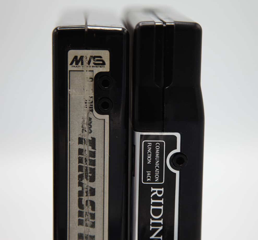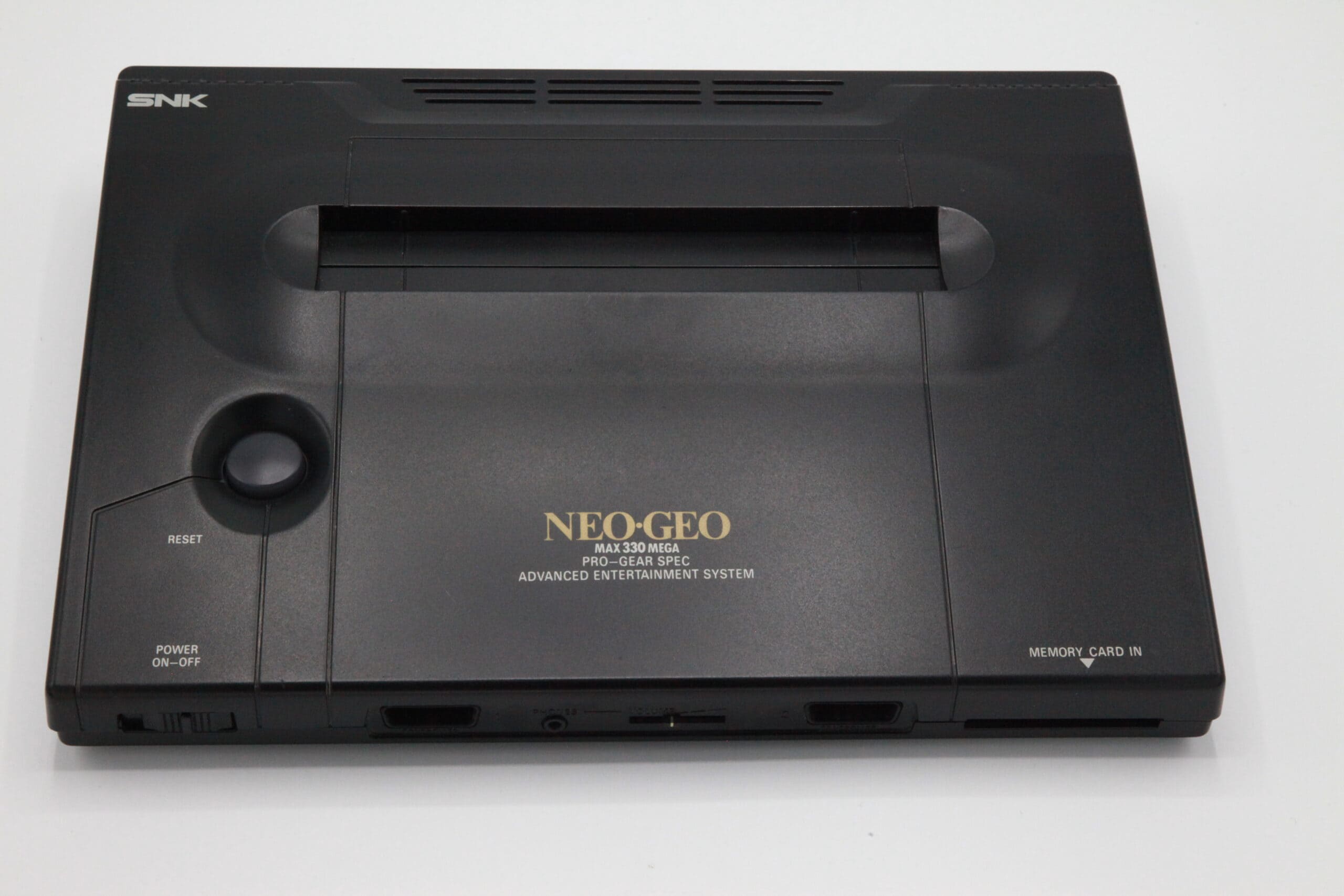 En parallèle, SNK développe la Neo Geo AES (Advanced Entertainment System), une console domestique conçue pour le marché grand public, mais surtout pour un système de location. Techniquement, elle est identique au MVS : même architecture, mêmes performances. Seul le format des cartouches diffère, ce qui explique qu’il soit aujourd’hui possible d’utiliser un adaptateur pour jouer aux cartouches MVS (moins cher) sur une AES.