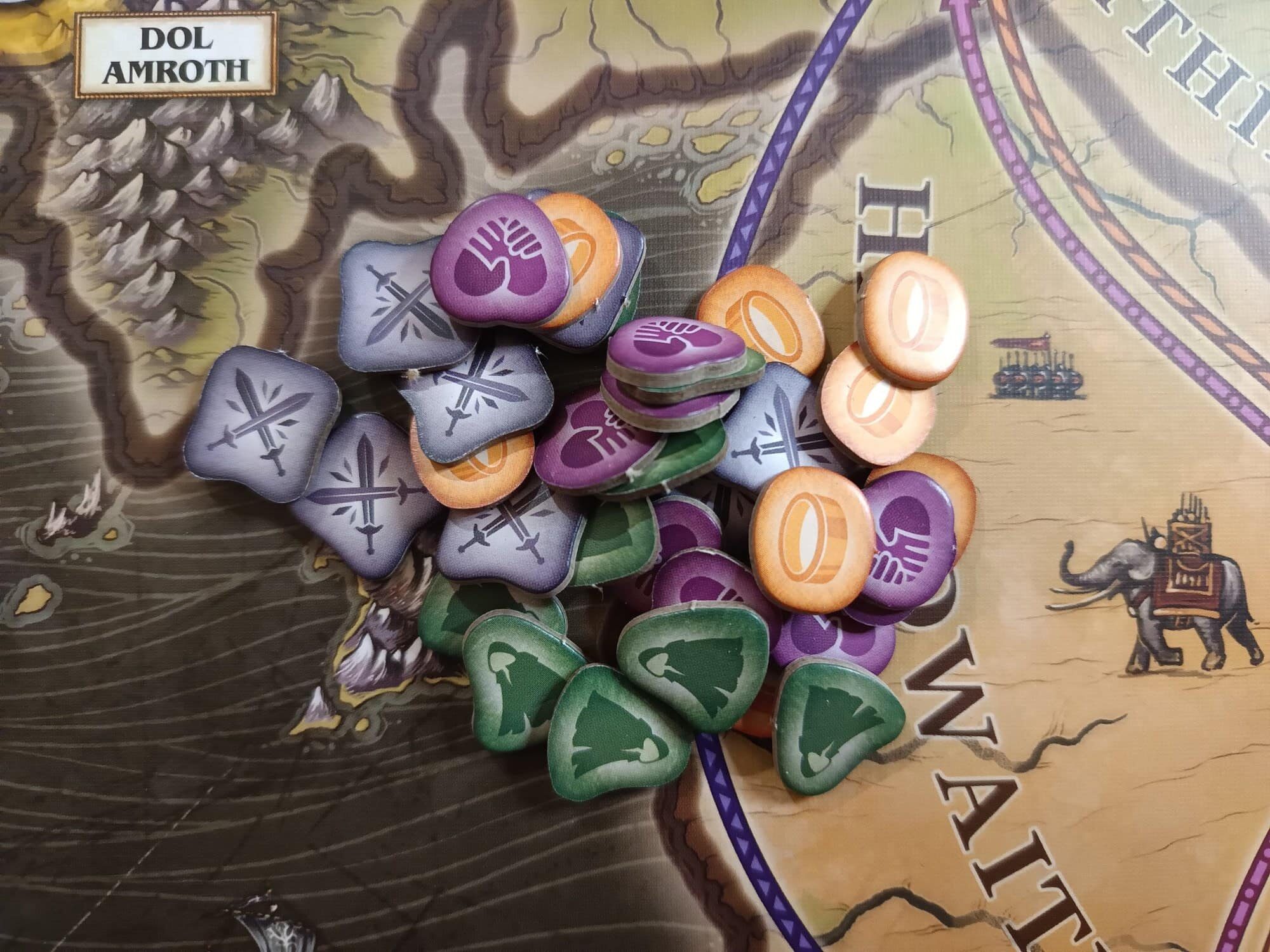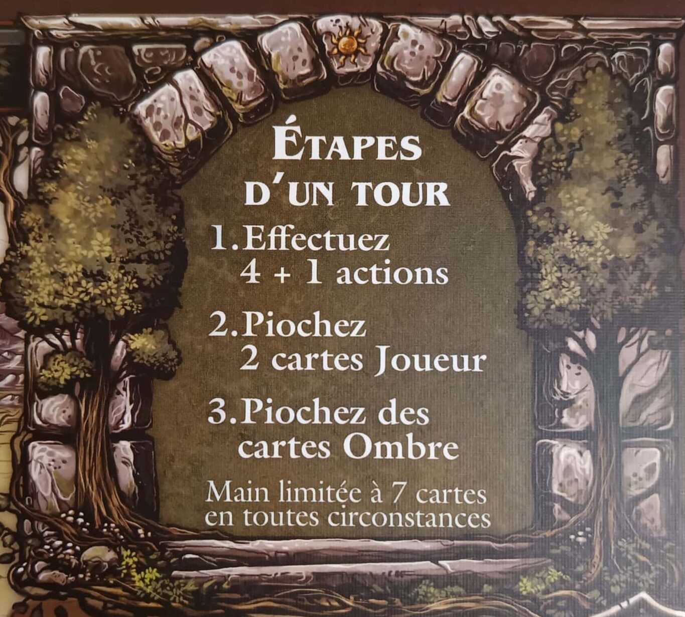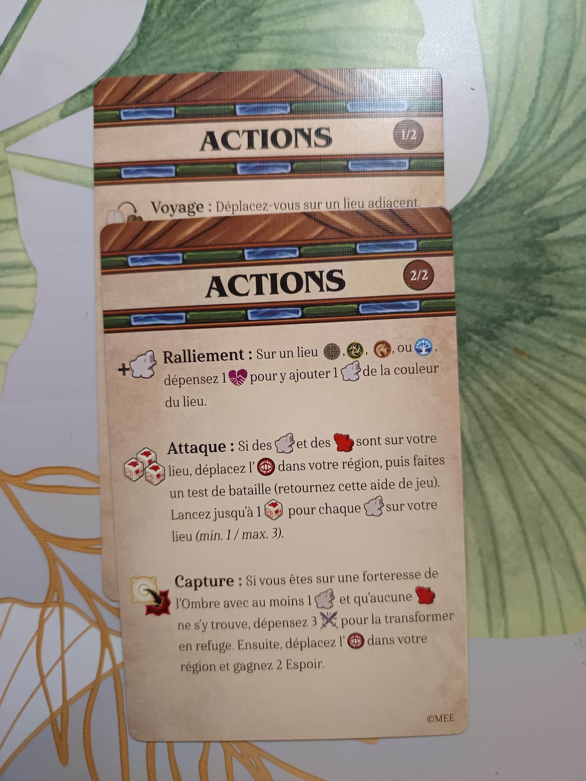 - Capture: Si un des personnages est sur une Forteresse de l’Ombre, il peut dépenser de la « Vaillance » pour conquérir la forteresse. Elle devient alors un Refuge pour la suite du jeu.