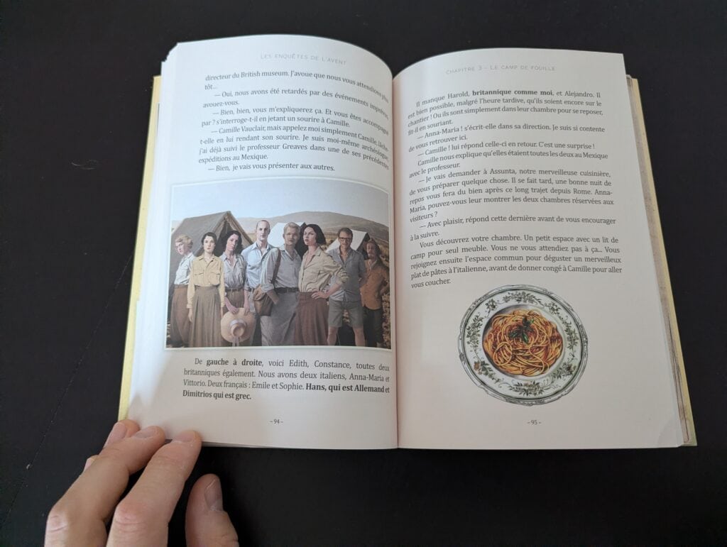 Habitué aux livres d’énigmes, j’ai bien aimé la narration de l’ouvrage. Facile à lire, il développe un thème assez universel autour de la disparition d’un archéologue suite à une découverte dans une cité antique près de Rome. Je ne vais bien sûr pas vous spoiler l’histoire, mais elle va vous faire voyager ! À ce sujet, elle m’a un peu fait penser aux Chevaliers de Baphomet par exemple, avec ses différents lieux à explorer et ses mystères à élucider.