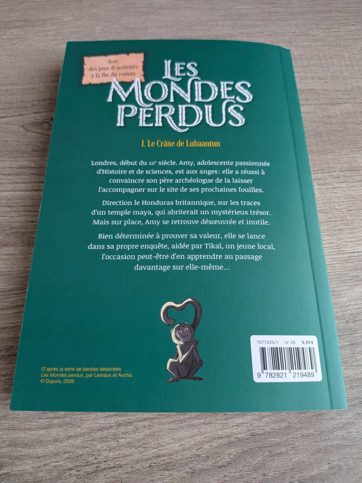 Publié aux éditions Les Livres du Dragon d’Or, Les Mondes Perdus, tome 1 : Le Crâne de Lubaantun est l’adaptation en roman d’une bande dessinée jeunesse à succès. Ce premier tome propose une aventure archéologique rythmée, accessible dès 9 ans. Il est sorti en avril 2026, avec un format pensé pour les jeunes lecteurs qui aiment déjà les grandes histoires.