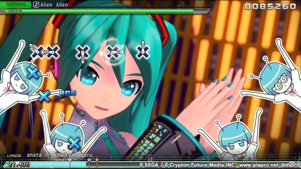 La PlayStation Portable (PSP) n’est pas en reste. Outre des portages de Dance Dance Revolution avec tapis de danse miniatures, elle accueille Patapon (SIE Japan Studio, 2007), qui mélange stratégie et rythme : le joueur conduit une tribu de petits guerriers en tambourinant des séquences de tambour avec les boutons, les incitant à marcher, attaquer ou défendre en cadence. Patapon est salué pour avoir marié la musique au gameplay tactique, et deviendra une trilogie sur PSP. Mais surtout, la PSP voit naître en 2009 un phénomène venu du Japon : Hatsune Miku: Project DIVA (Sega/Crypton Future Media). Cette série met en scène la pop-star virtuelle Hatsune Miku (une chanteuse synthétique Vocaloid très populaire) dans des jeux de rythme où le joueur doit appuyer en rythme sur les boutons correspondant aux symboles qui fusent à l’écran, sur fond de clips en 3D de Miku et ses amis. Project DIVA (2009) est un énorme succès au Japon, capitalisant sur la ferveur des fans de Vocaloid. Il lance la tendance des jeux de rythme à idoles virtuelles, bientôt rejoints par d’autres licences d’“idol games” sur consoles et mobiles (nous y reviendrons). Sega continuera d’éditer de nombreux opus Project DIVA sur PSP, PS3, PS4, Switch, ainsi que des versions arcade, satisfaisant un large public d’otakus mélomanes.