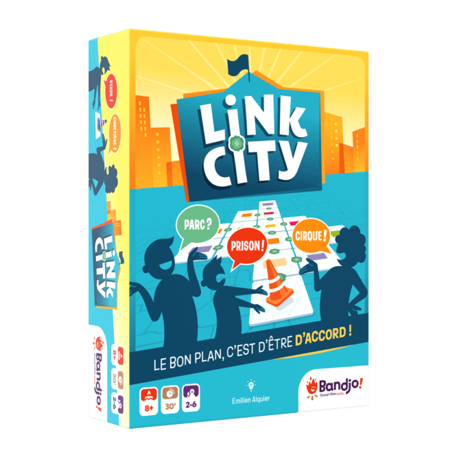 Link City est un jeu de société conçu pour 2 à 5 joueurs, à partir de 8 ans, et dont une partie dure environ 30 à 45 minutes. C’est un jeu collaboratif, le score final sera comparé à une échelle de score qui vous dira si vous êtes un urbaniste de valeur ou si vous devriez plutôt jouer aux osselets.