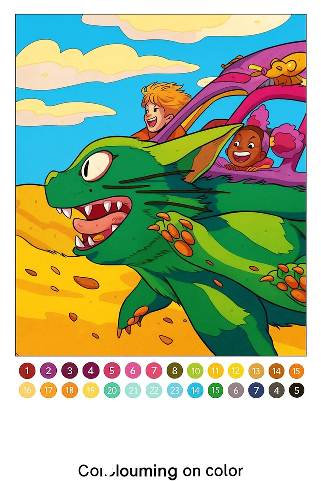 Comme pour un “coloriage par numéros” classique, chaque illustration est découpée en zones numérotées qu’il faut remplir avec la couleur correspondante. Le résultat apparaît au fur et à mesure, et à la fin… on découvre une scène rappelant un film Ghibli.