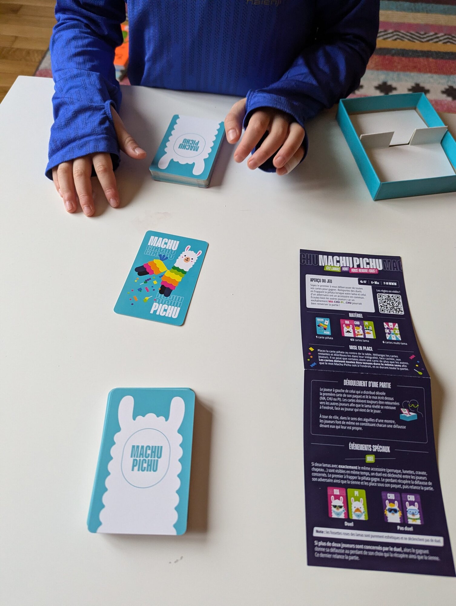 Machu Pichu est un jeu de société d’ambiance rapide et loufoque. Le thème ? Des lamas déguisés et un rythme effréné ! Les joueurs doivent se débarrasser de toutes leurs cartes le plus rapidement possible. Le tout dans une ambiance joyeuse, rythmée par des cris, des réflexes et des mains qui claquent sur une “piñata”. C’est un jeu idéal pour des soirées entre amis ou en famille, pour rire, s’amuser, et stimuler ses réflexes.