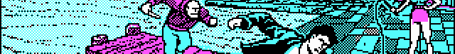 Ce qui est formidable avec Manhattan Dealers, c’est la capacité des graphistes de l’époque de réussir à pondre des tableaux aussi beaux avec une résolution merdique (on doit être en dessous du 320×240), et quatre pauvres couleurs (mauve, cyan, noir, blanc). Les animations sont nombreuses, chaque personnage est différent, c’est assez incroyable pour l’époque. En plus, les tableaux proposent quelques interactions avec par exemple des personnages aux fenêtres qui vous lancent des pavés. Bon, pour la musique et les sons, sur mon PC1512 c’était plus des bips, donc on évitera d’en parler.