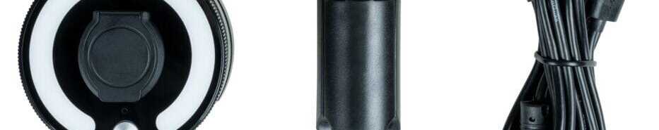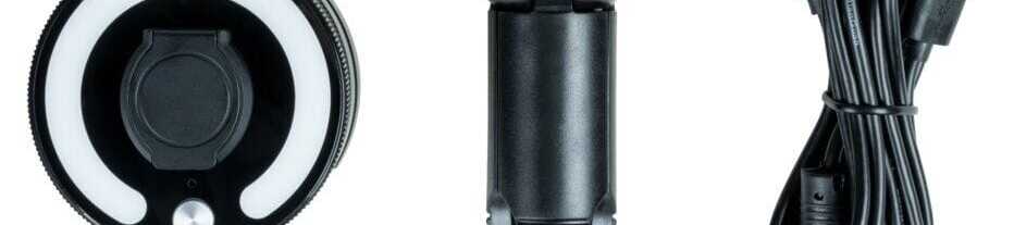 En effet, la Webcam Full HD de Nacon surprend par son design, un « ring » comme on dit dans le milieu de l’influence, prétexte pour disposer tout autour de la caméra un éclairage LED afin de rendre votre teint plus sympathique. Grosse option de cette proposition, le fait de pouvoir changer l’ambiance de l’éclairage du blanc au plus chaud (3 niveaux étant proposés par simple touché d’un bouton tactile, ainsi que le changement d’intensité de la lumière). Celle-ci est aussi livrée avec un « cache vie privée » qu’il faudra installer avec le système de collage intégré. On regrettera que le cache si il est positionné autrement qu’avec une ouverture vers le bas aura tendance à cacher la lumière de l’anneau.