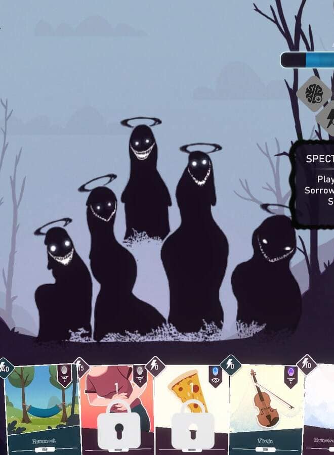« Construisez votre deck et vos capacités en répondant à des tests de personnalité, en visitant des salles ou en méditant. Affrontez vos phobies et vainquez-les grâce au pouvoir des cartes – inspirées de la vie ! ».