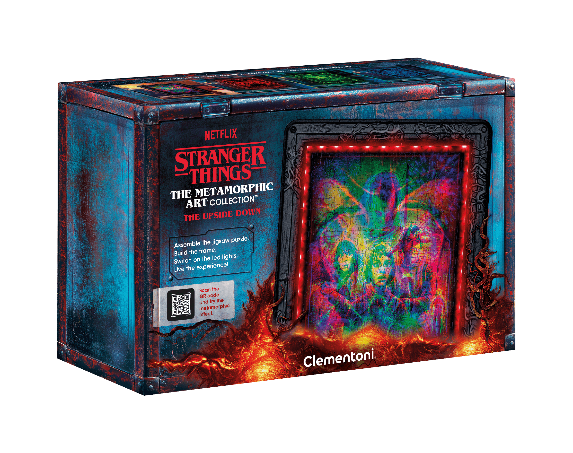 - Et enfin, un des jouets qui vont forcément attirer l’attention en cette fin d’année : le puzzle Stranger Things – Vecna dans la collection Metamorphic Art. Ce n’est pas le seul dans la collection, il y a aussi Le monde à l’envers. C’est à la fois un puzzle de 520 pièces, mais il est également fourni avec un cadre à monter avec de petites LEDs dedans. Et en fonction de la couleur que vous allez choisir (rouge, bleu, vert), une image différente apparaîtra. Effet Waouh ga-ran-ti dans votre salon ! Le soir bien sûr ;). Prix : 39.90€