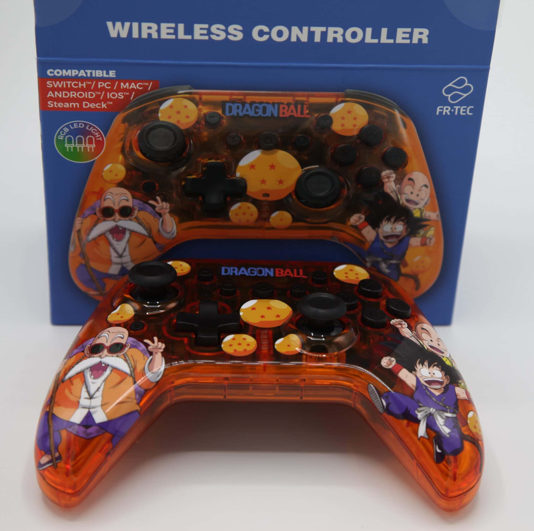 Une manette gaming estampillée Dragon Ball Z, compatible avec plusieurs plateformes. Le revêtement semble assez glissant après un certain temps. On note surtout un bon rapport qualité prix avec une bonne prise en main, la réactivité des boutons, et l’esthétique qui colle à la licence.