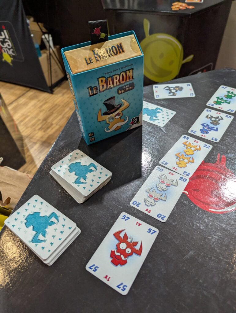 Enfin, voici Le Baron, un jeu d’ambiance digne héritier du 6 qui prend. On repart donc sur un jeu de cartes dans lequel l’objectif principal est d’éviter de prendre des cartes (ou plutôt d’éviter les « têtes de bœuf »), mais avec des variantes. On rajoute une dimension autour de la couleur des grosses têtes de bœuf. Cela va apporter plus de flexibilité pour poser les cartes, mais aussi de nouvelles stratégies dites “de bâtard” pour pousser les adversaires à ramasser les rangées… Indispensable si vous n’avez pas de 6 qui prend à la maison, ou si vous voulez lui donner un second souffle !