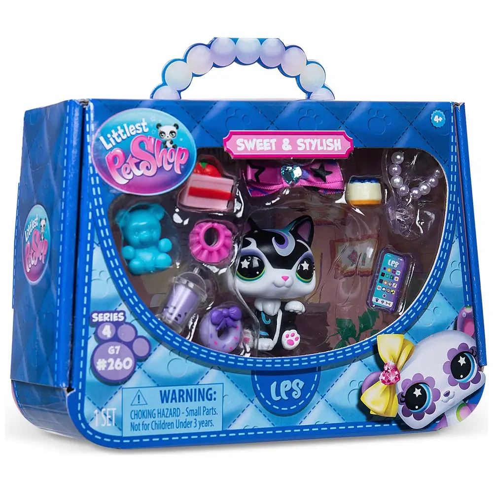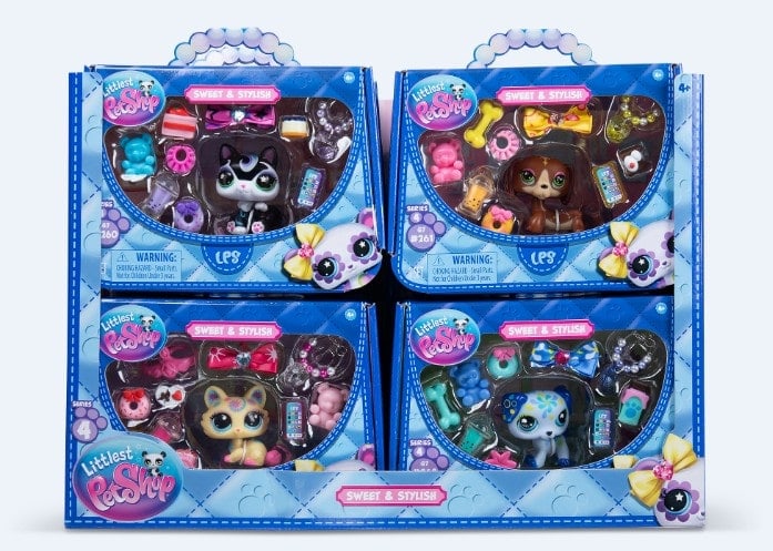 - Littlest Petshop Sweet & Stylish : un joli coffret en forme de sac à main, qui se transforme en décor pour mettre en scène la figurine fournie avec ses neuf accessoires. Prix : 14.99€