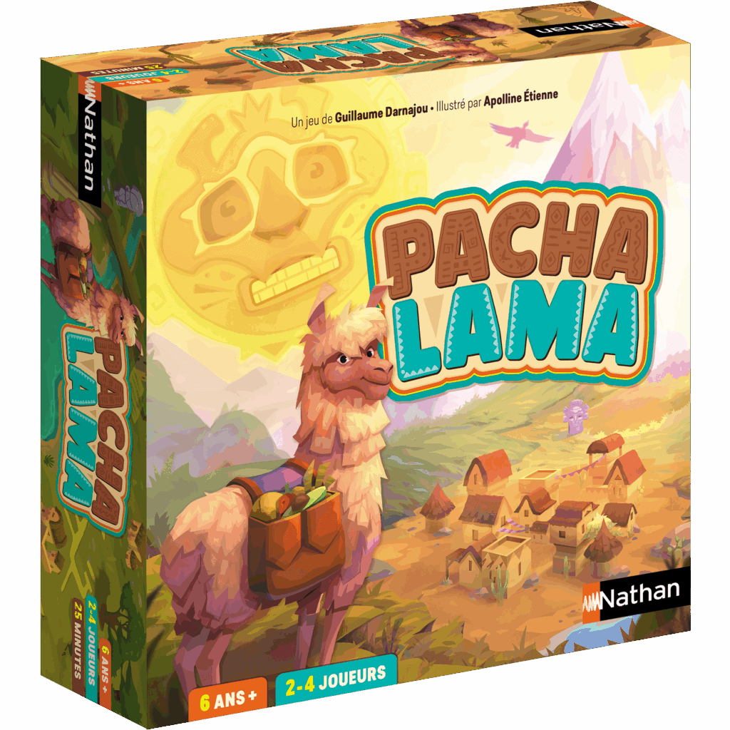 - Enfin un dernier jeu de société qui lui aussi présente un design très travaillé et au cœur du gameplay : Pachalama. Le plateau et la boîte vont se transformer en montagne d’Amérique du Sud, avec différents niveaux ! Juste waouh ! Chaque joueur va devoir gérer des ressources pour préparer une offrande sacrée. Mais plus le lama est chargé, plus il est lent ! Et il faut gravir la montagne… Un jeu sur une thématique originale qui mêle stratégie et gestion. A partir de 6 ans pour 24.99€