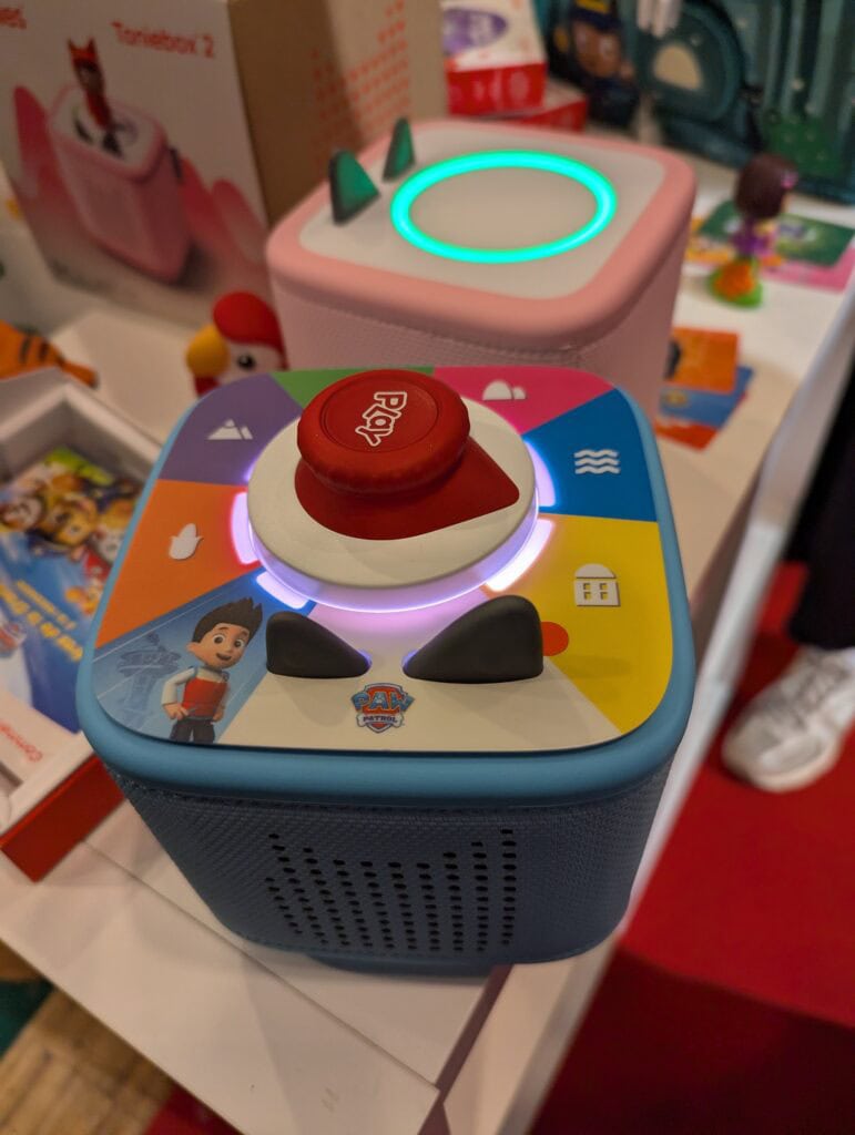 Mais ce n’est pas tout. La Toniebox 2 est compatible avec un contrôleur qui transforme votre conteuse en jeu interactif ! Le contrôleur permet au petit joueur de piloter l’action au cœur des jeux Tonieplay. Il peut s’agir de quizz ou même de jeux de plateau, comme celui dans l’univers de la Pat’ Patrouille par exemple.