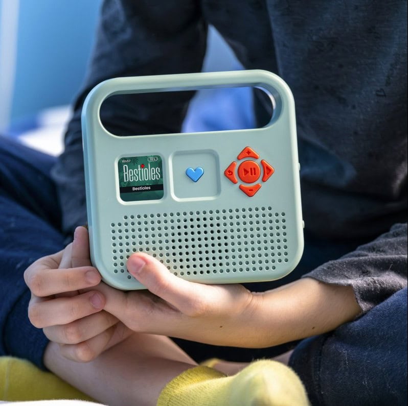 L’éditeur Merlin est réputé depuis plusieurs années pour sa boîte à histoire. Le projet Merlin a été porté par du lourd : Radio France et Bayard. Vous comprendrez donc qu’en terme de contenu… On peut difficilement faire mieux ! Pour 84,90€ (mais vous pouvez parfois la toucher entre 70 et 75€ ) vous avez accès à ce bel objet et à plus de mille titres issus du répertoire de Radio France et de Bayard Jeunesse. En détail votre enfant pourra piocher dans des histoires issues de Hello Pomme d’Api, J’aime Lire, Les Belles Histoires… Et à tous les podcasts issus de France Inter, France Bleu, France Culture, France Musique, Franceinfo… Comment ça c’est pas sexy pour les enfants ? A la maison on est fans de Les Odyssées sur France Inter (pour 7-12 ans, des histoires autour des personnages historiques, des grandes aventures, des épisodes de la mythologie ou des figures marquantes du passé) et des Bestioles de France Inter (plutôt pour 6-8 ans, chaque épisode fait découvrir une « bestiole » et ses particularités).